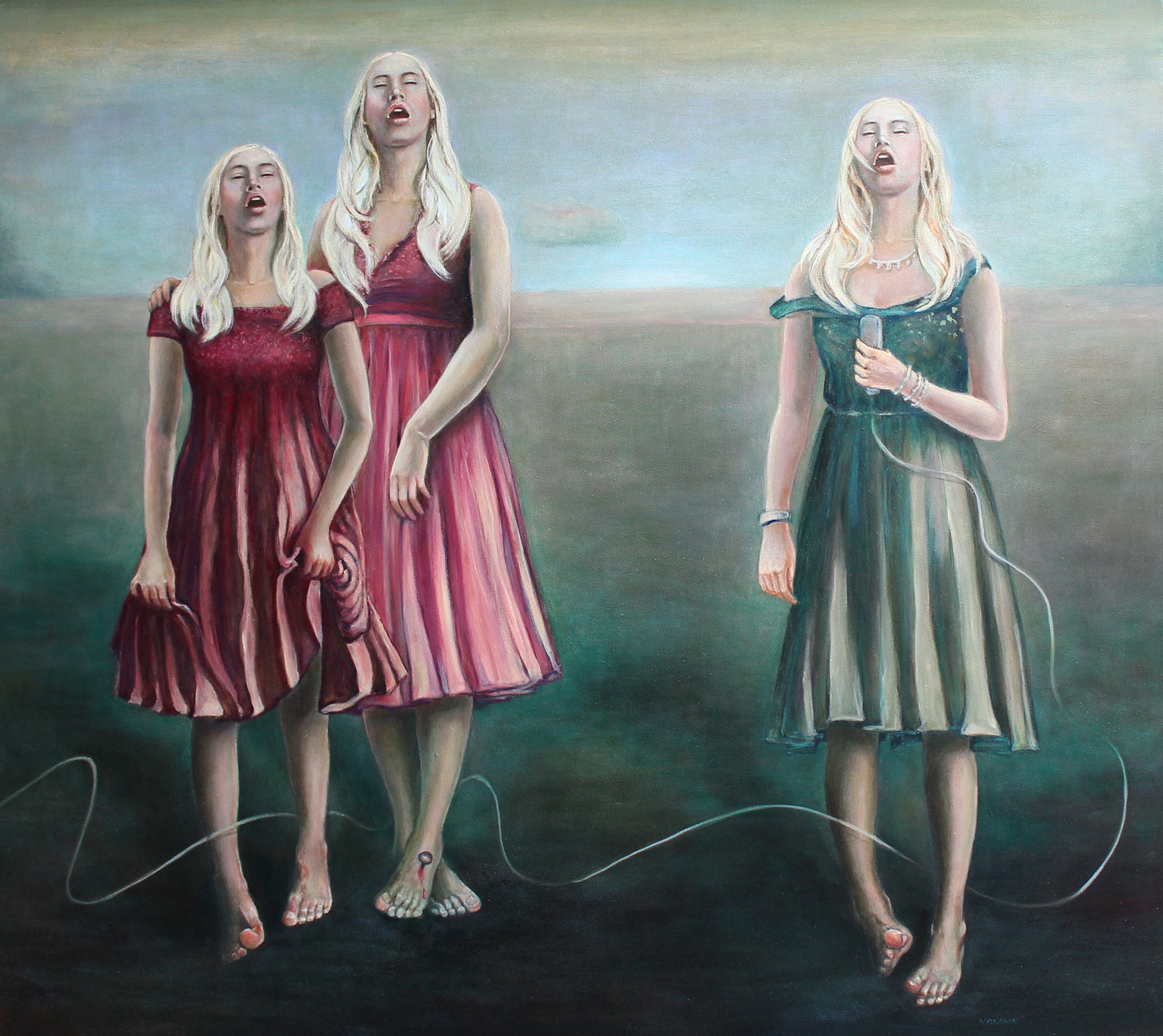Vrouwen Groen Olieverf Surreëel Vliegen Zingen Stigmata