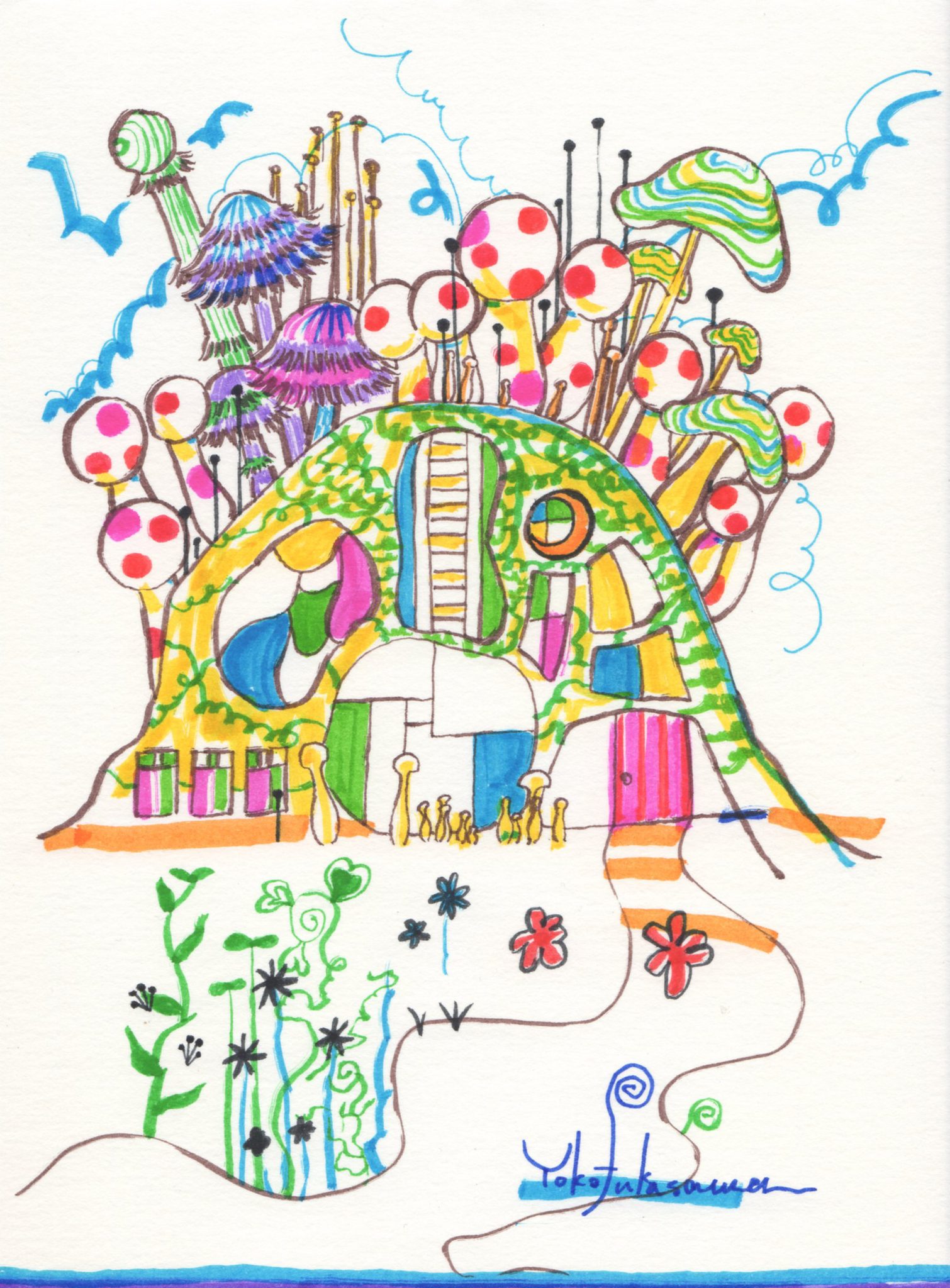 Yoko Fukasawa was born in 1982. 2001-Japan traditional craft department,Metal crafts major 2001-Volkswagen new Beetle - art contest The third place. 2002-TOKYO DOME - Tableware festival Fine work. 2017-And Schizophrenia has been revealed. Her paintings are outsider art. They are characterized by simple shapes and bright colors. She wants you to look at them and relax.