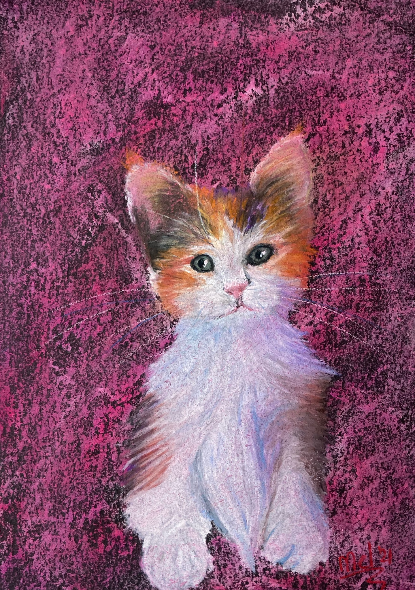 Ik ben Mel, geboren in 1975 te Rotterdam. Ik teken al sinds ik klein was katten en ben autodidact. Ik werk veel met softpastel omdat dit medium mijn katten het best tot zijn recht laat komen. Veel plezier bij het bekijken van mijn katten!