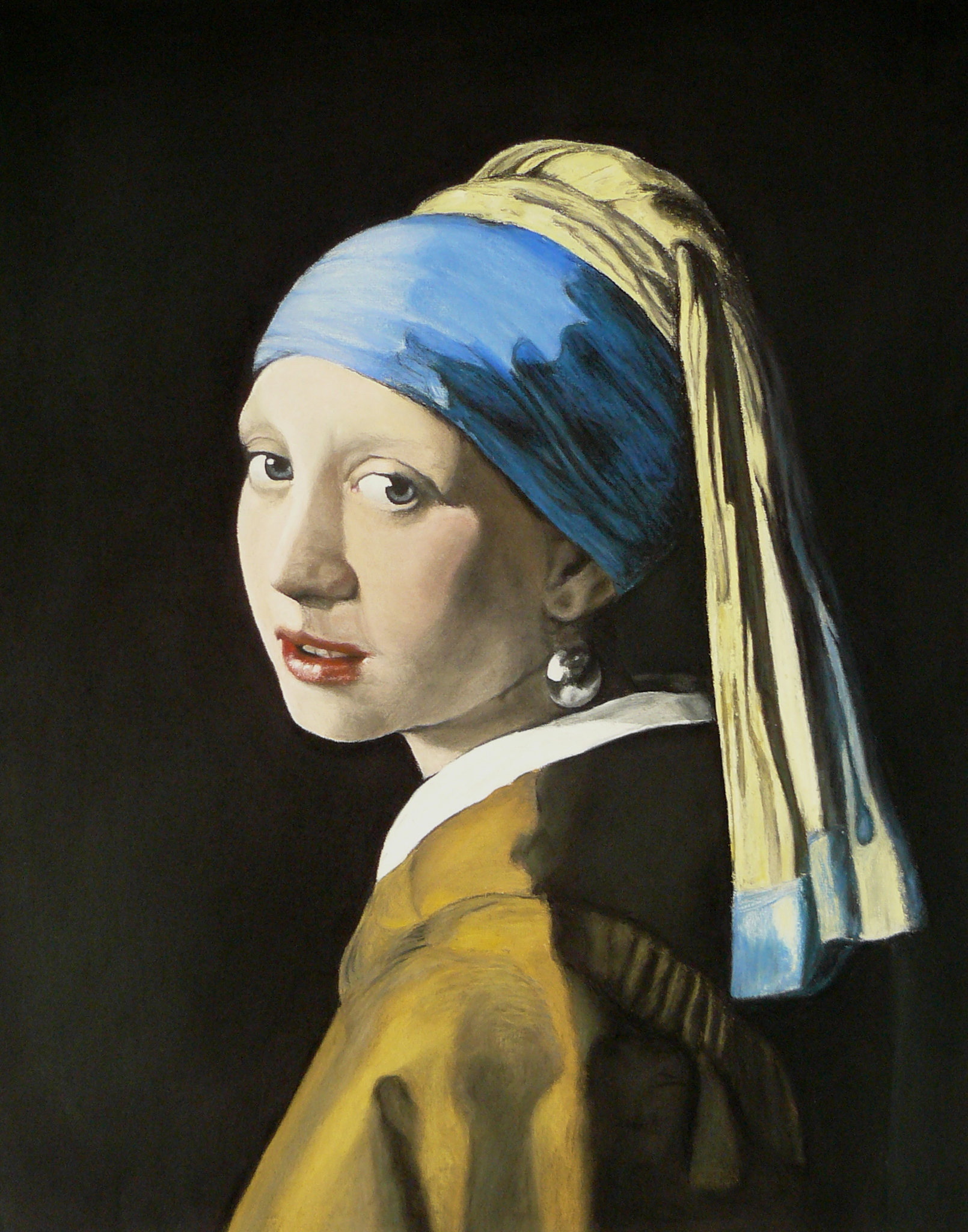 Meisje met de parel van Vermeer, maar dan in pastel.