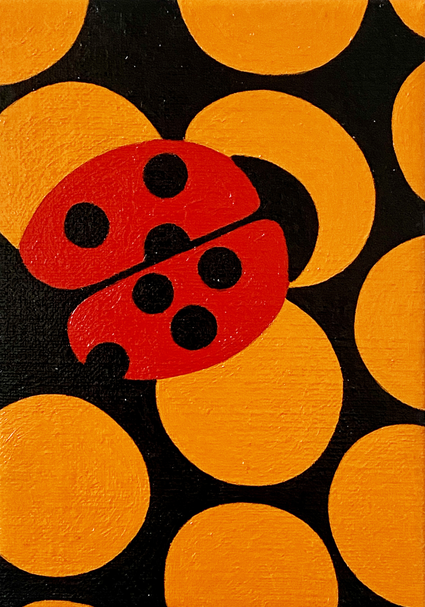 Abstract Rood Oranje Zwart Dots Stippen Surreëel Beeldspraak Lieveheersbeestje Rechthoek Beeldtaal 18cm 13cm