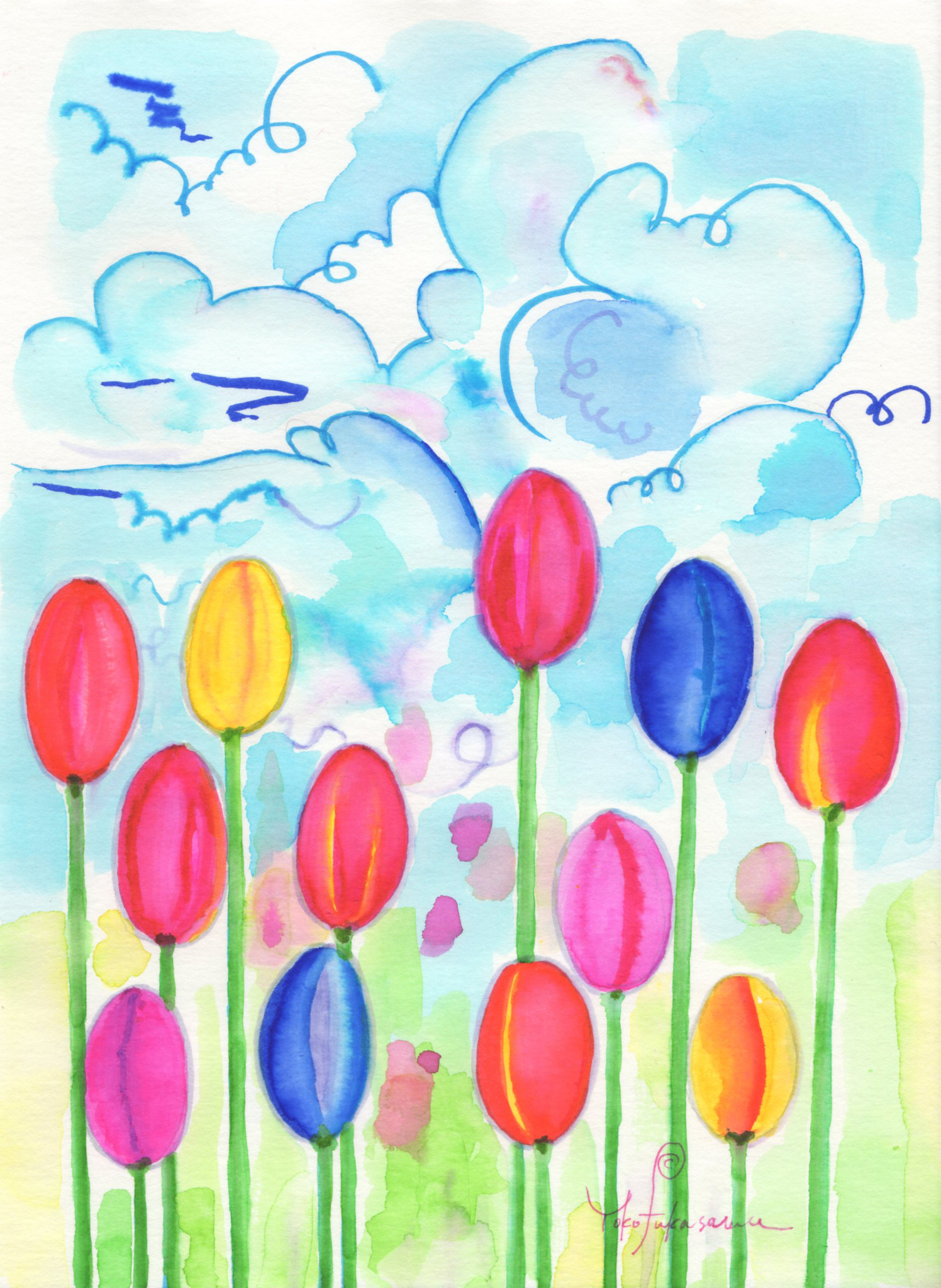 Yoko Fukasawa was born in 1982. 2001-Japan traditional craft department,Metal crafts major 2001-Volkswagen new Beetle - art contest The third place. 2002-TOKYO DOME - Tableware festival Fine work. 2017-And Schizophrenia has been revealed. Her paintings are outsider art. They are characterized by simple shapes and bright colors. She wants you to look at them and relax.