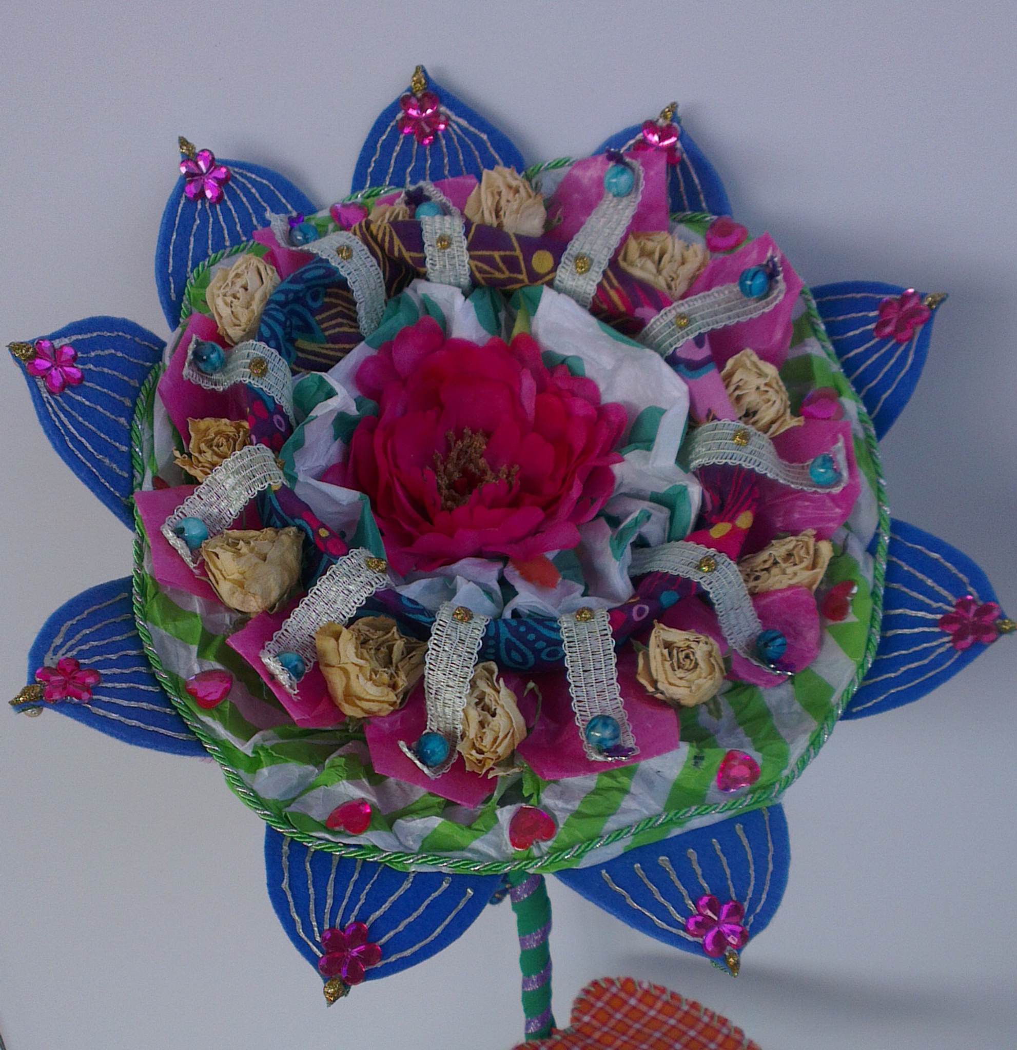 Saskia Van Aubel maakt keramische werkstukken, schilderijen, tekeningen en bloemobjecten van textiel.