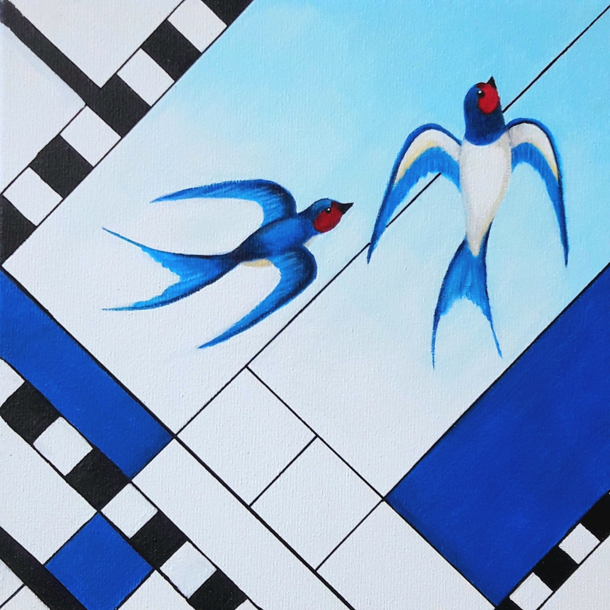 Blauw Vogel Blue Bird Mondrian Mondriaan Squares Zwaluw Vierkanten Swallow