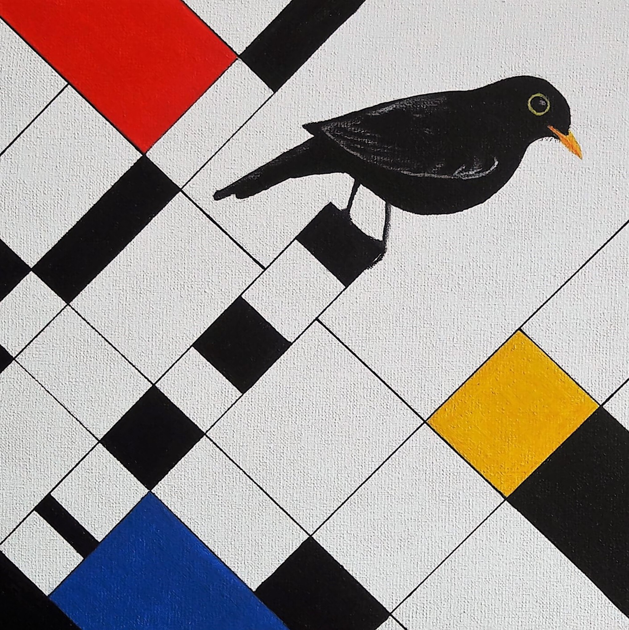 Rood Geel Zwart Blauw Vogel Yellow Blue Red Black Bird Mondriaan Merel Squares Vierkanten