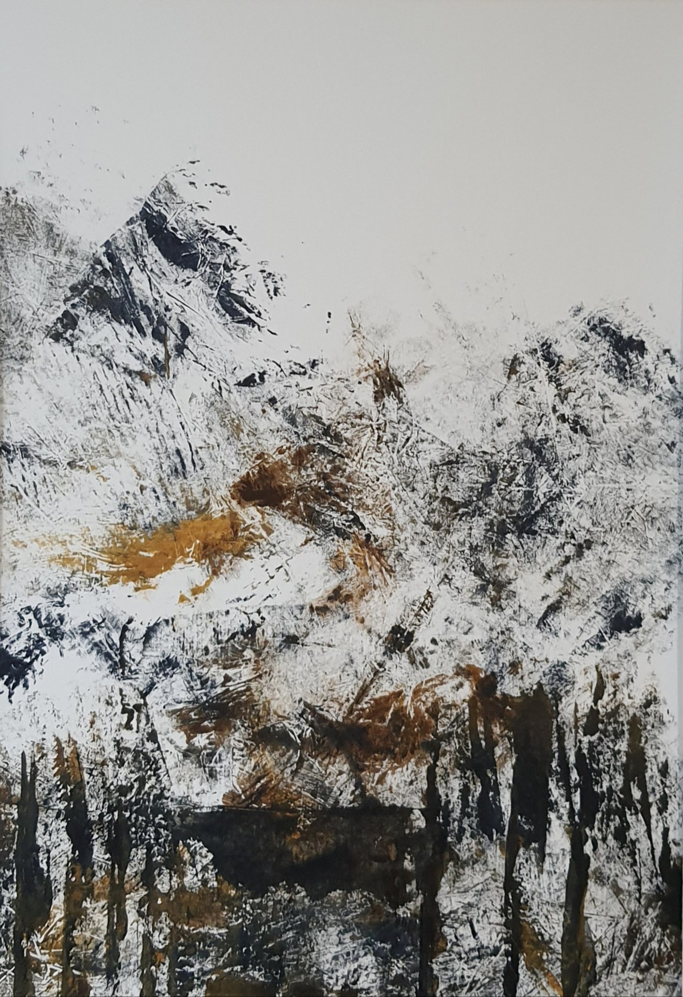 Abstract Natuur Bergen Winter Alpen Monoprint Acrylverf Papier