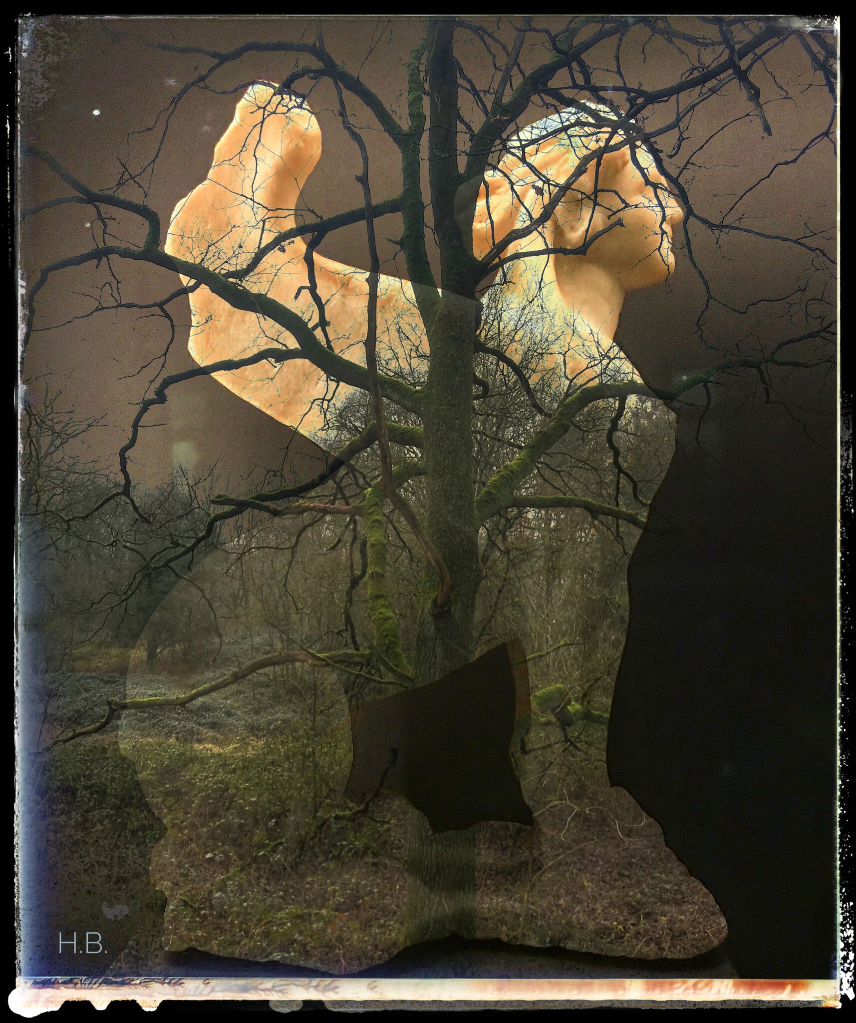 Foto Acryl Bruin Digitaal Marmer Surrealistisch Bomen Bos