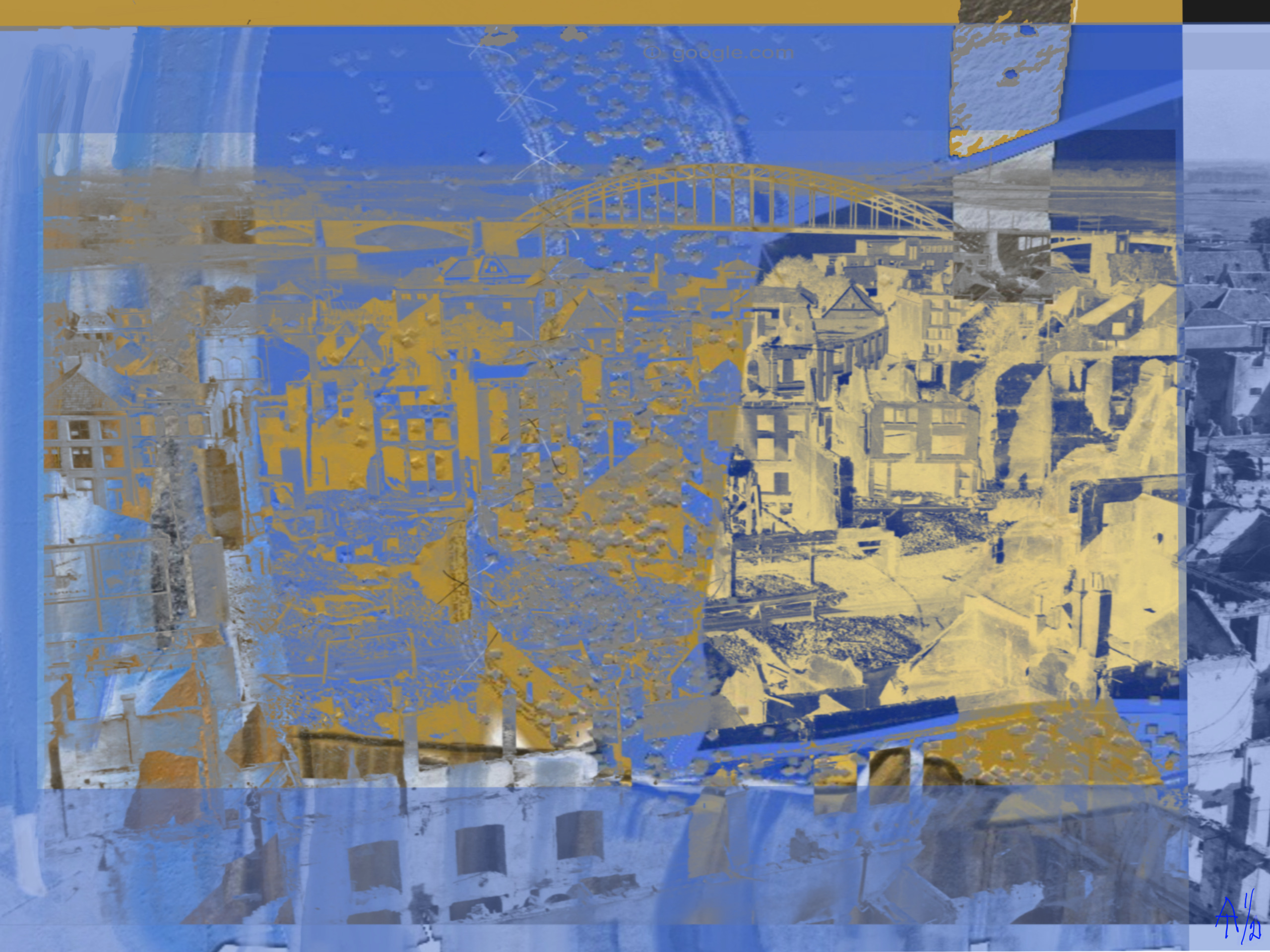 Arendje Tijssen geboren in Hengelo(O) 1939 Woonachtig in Sneek. Mijn werk bestaat uit digitale collages, décollages, schilderingen en tekeningen op iPad. Kenmerken: wegkijken van de réaliteit.
