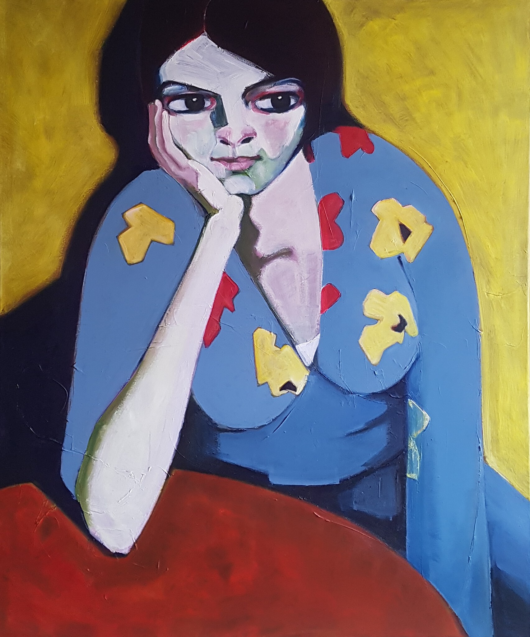 Schilderij Vrouw Portret Kleurrijk Kunst Schilderkunst Mens Acrylverf Zittend Kleur Portretschilderij Ode