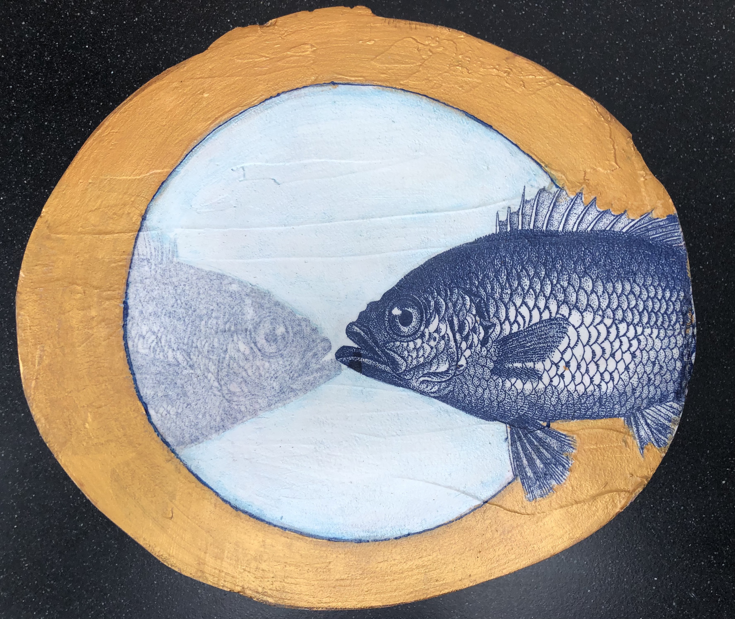 Wit Blauw Goud 2 Vissen Houten Boomschijf