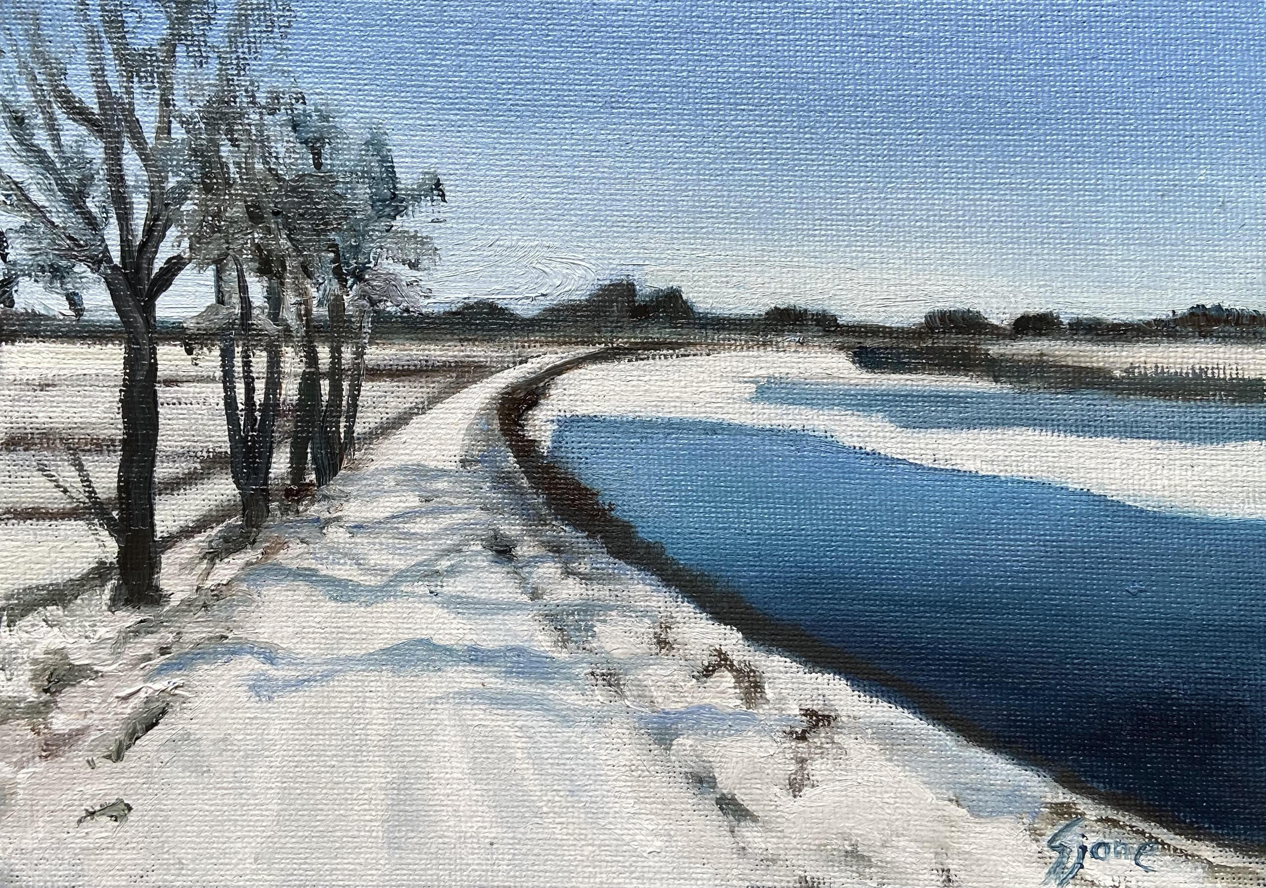 Verkocht Afm. 13x18 cm Dit is gemaakt n.a.v. een wandeling langs de Boezem in de Albasserwaard