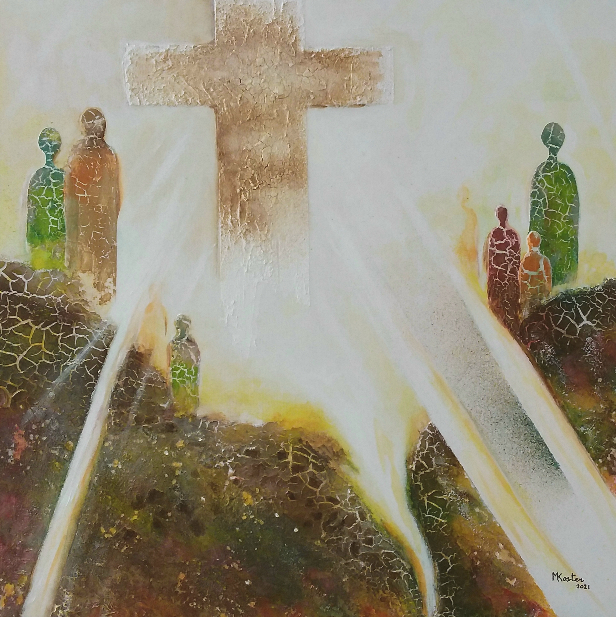 Intuitief geschilderd met als versregel "There is a crack in everything, that's how the light gets in" als inspiratiebron. Deze tekst is uit "Anthem"van Leonard Cohen Het werk is gevernist en in een baklijst. Blank hout, wit of zwart. Prijs is inclusief lijst.