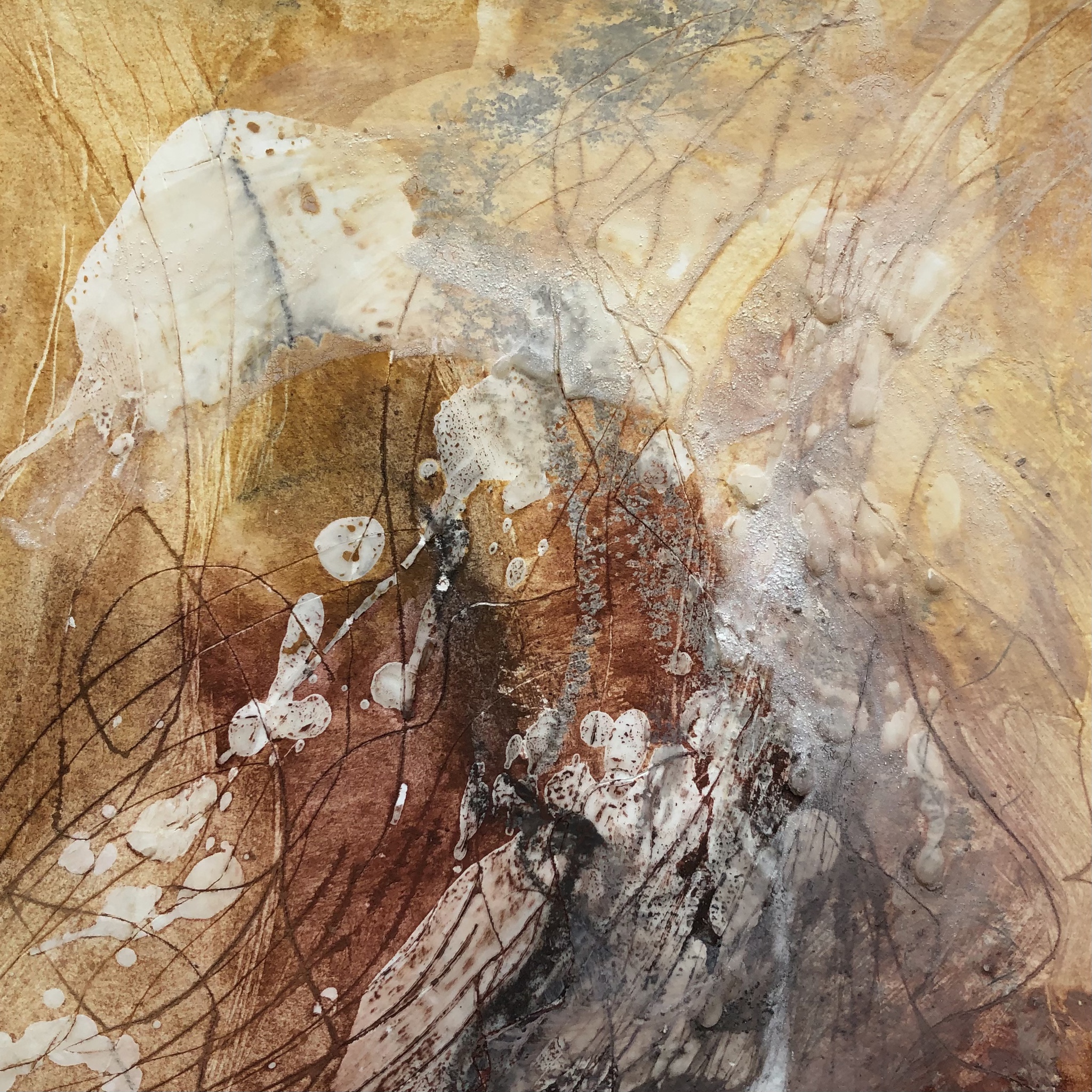 Werkje met gebruikmaking van assen, pigmenten, potlood en paraffine op aquarelpapier
