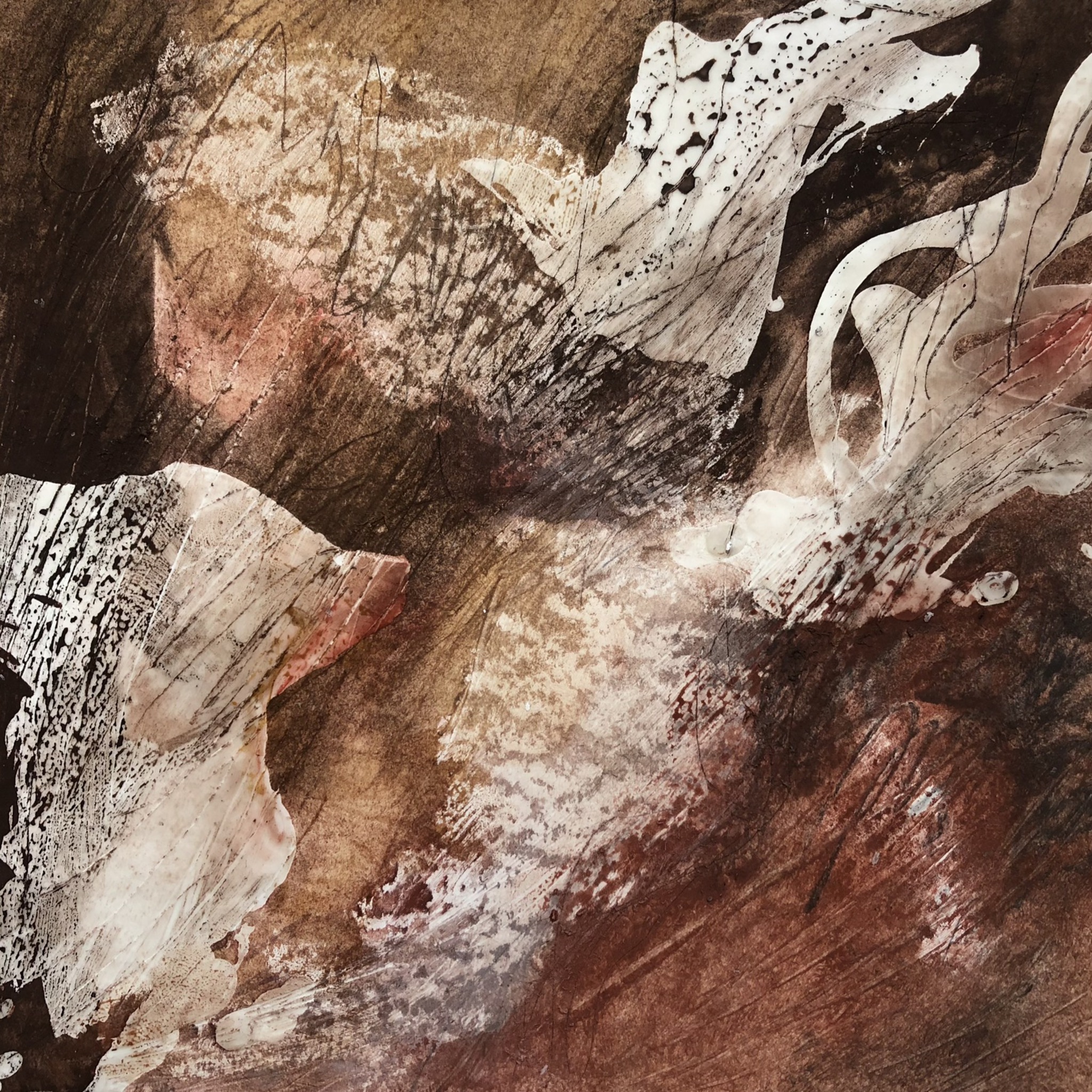 Werkje met gebruikmaking van assen, pigmenten, potlood en paraffine op aquarelpapier