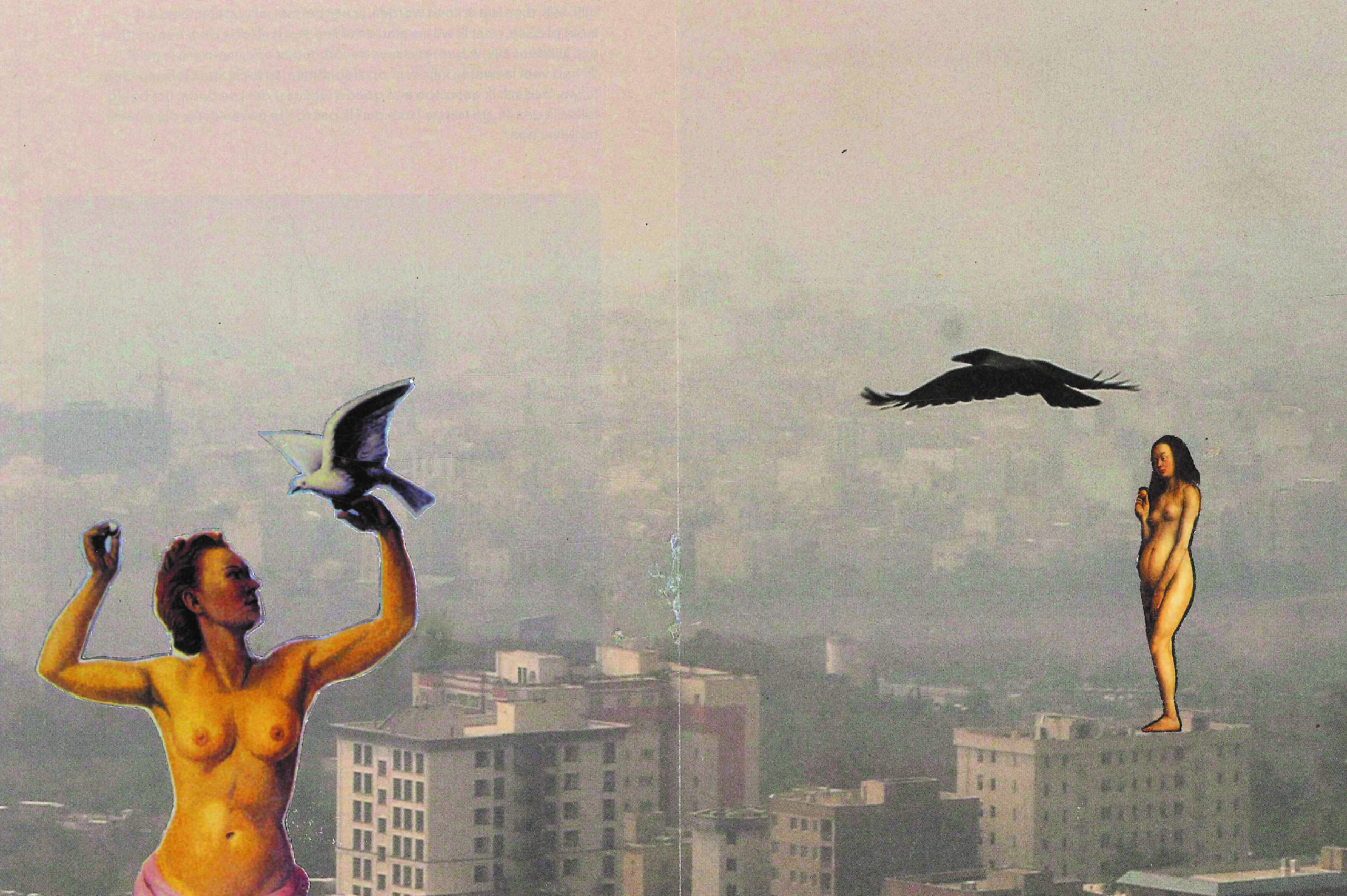 Vrouwen Grijs Lucht Vogels Eva Flatgebouwen