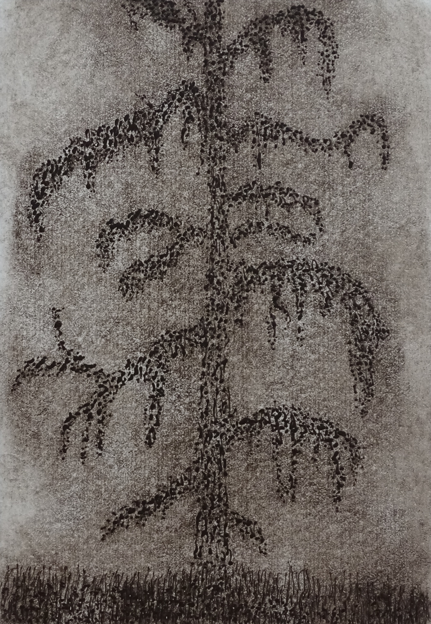 larix is een als ets gedrukte linoleumsnede. Het is een ode aan Hercules Segers, die experimenteerde met de grafische technieken en de eerste kleurendruk maakte in het nederlandse. De afbeelding is ontstaan door met tandartsboortjes het motief uit de lino te boren en in dit geval als diepdruk af te drukken, waardoor een heel ander beeld ontstaat dan wanneer dit als hoogdruk gebeurt.