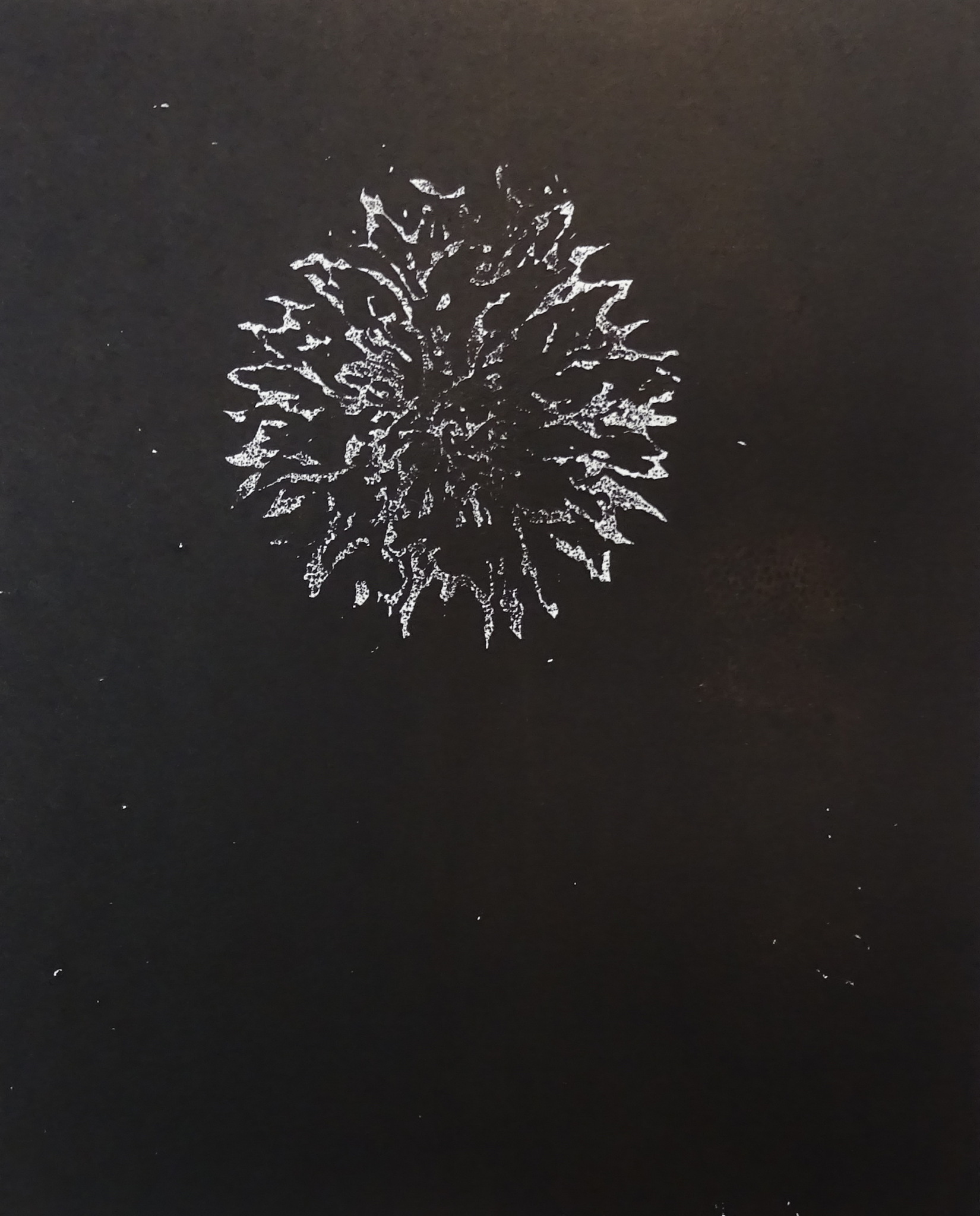het is een spontaan ontstaan beeld van een kristal bij het gebruiken van hoogdruktechniek na het maken van een ets op zinkplaat.