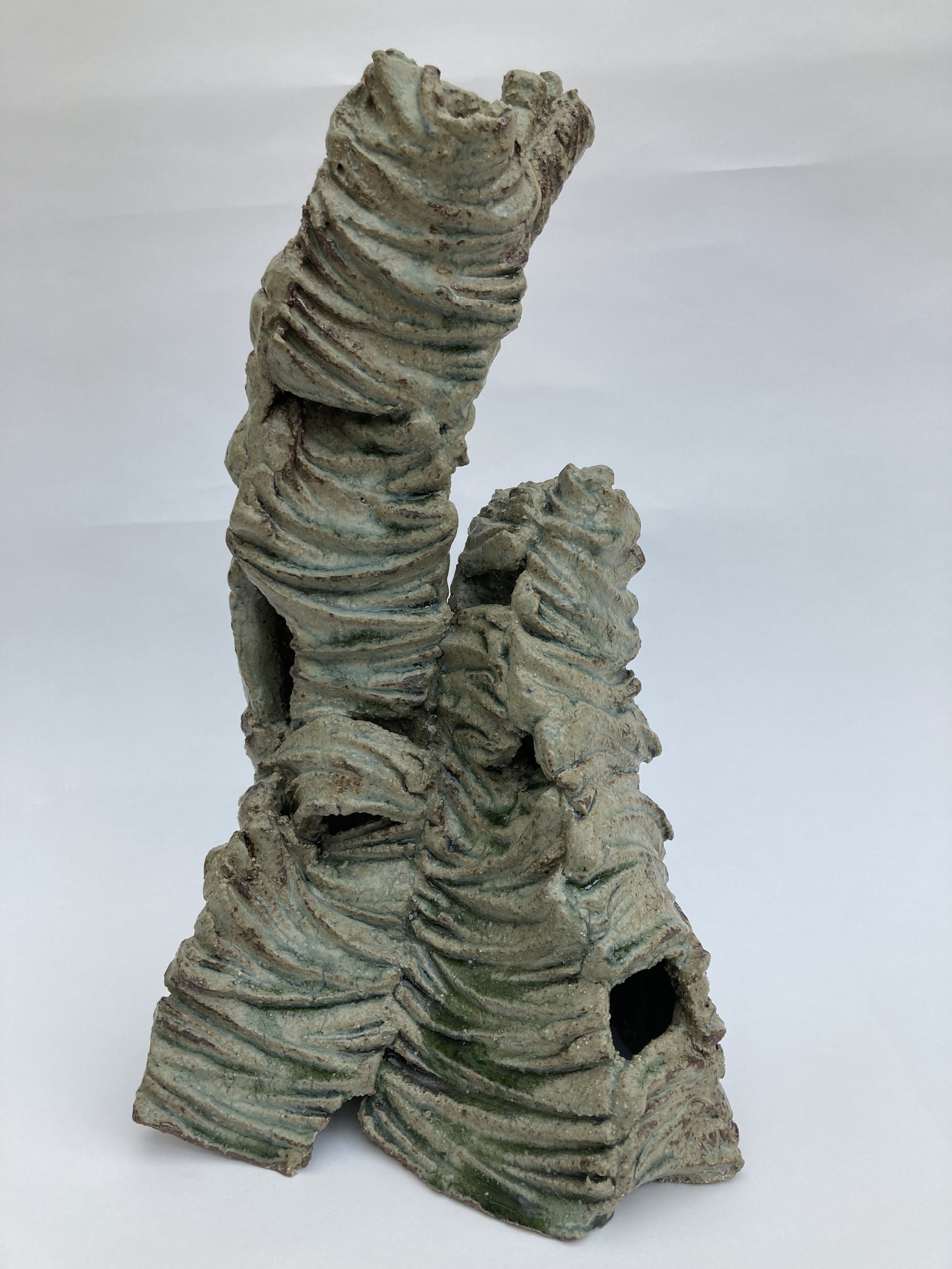 Zoektocht in keramiek: vrouwzijn in vloeiende lijnen en contouren; hoge dunne vaasvormen als weerspiegeling van een zoektocht naar identiteit...