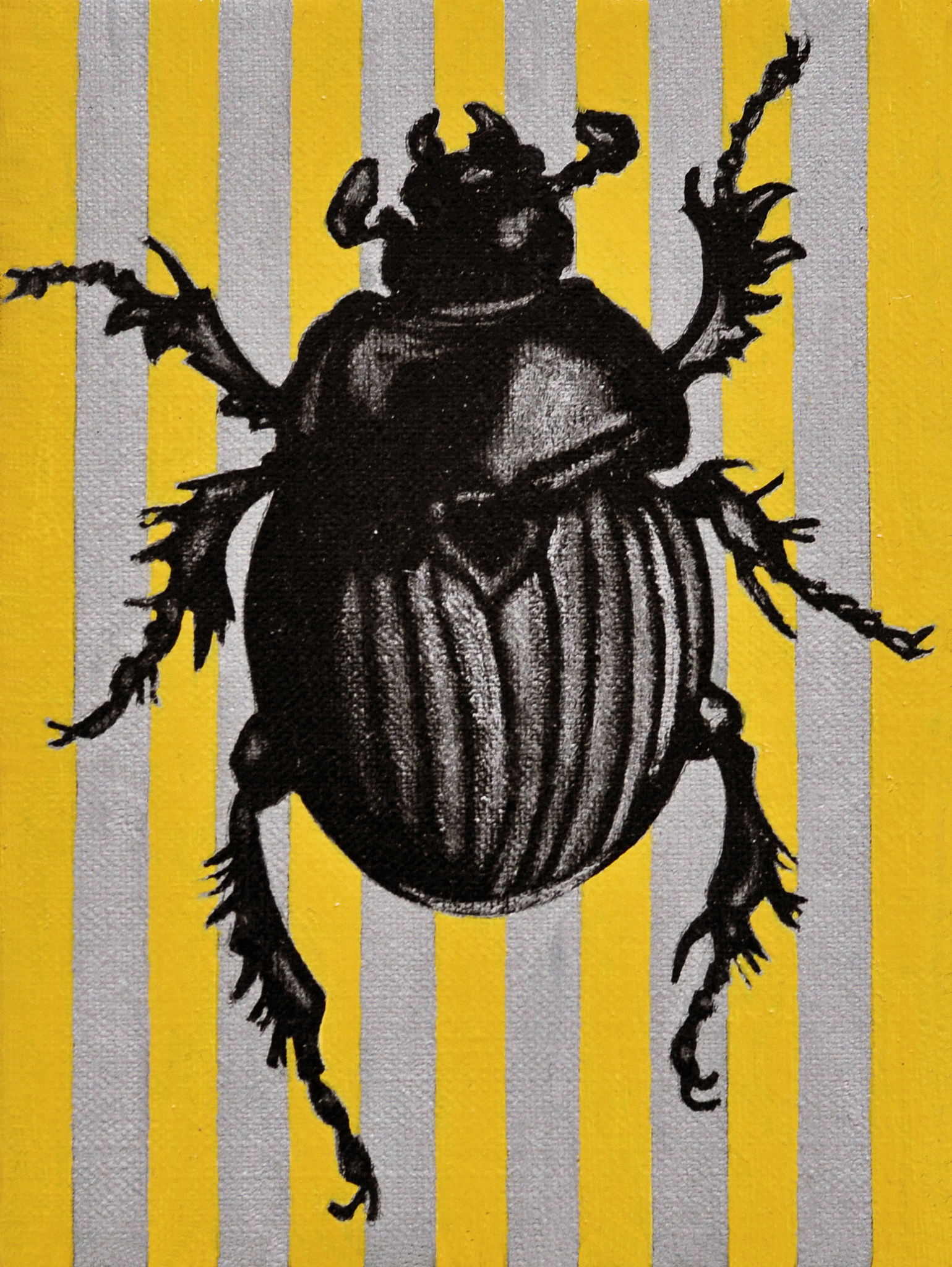 Geel Zwart Zilver Surreëel Beeldspraak Kever Staand Rechthoek Mest Beeldtaal Mestkever