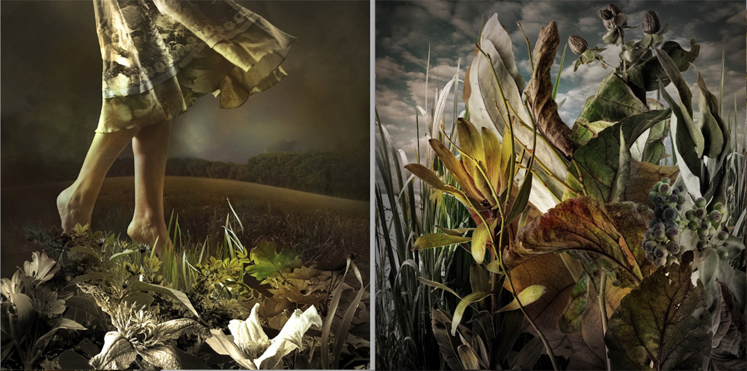 Hypercollage Tweeluik 2x80x80 [onderdeel van een installatie / muur] I am the soil that feeds me The water I drink The air I breath Every step is my way home