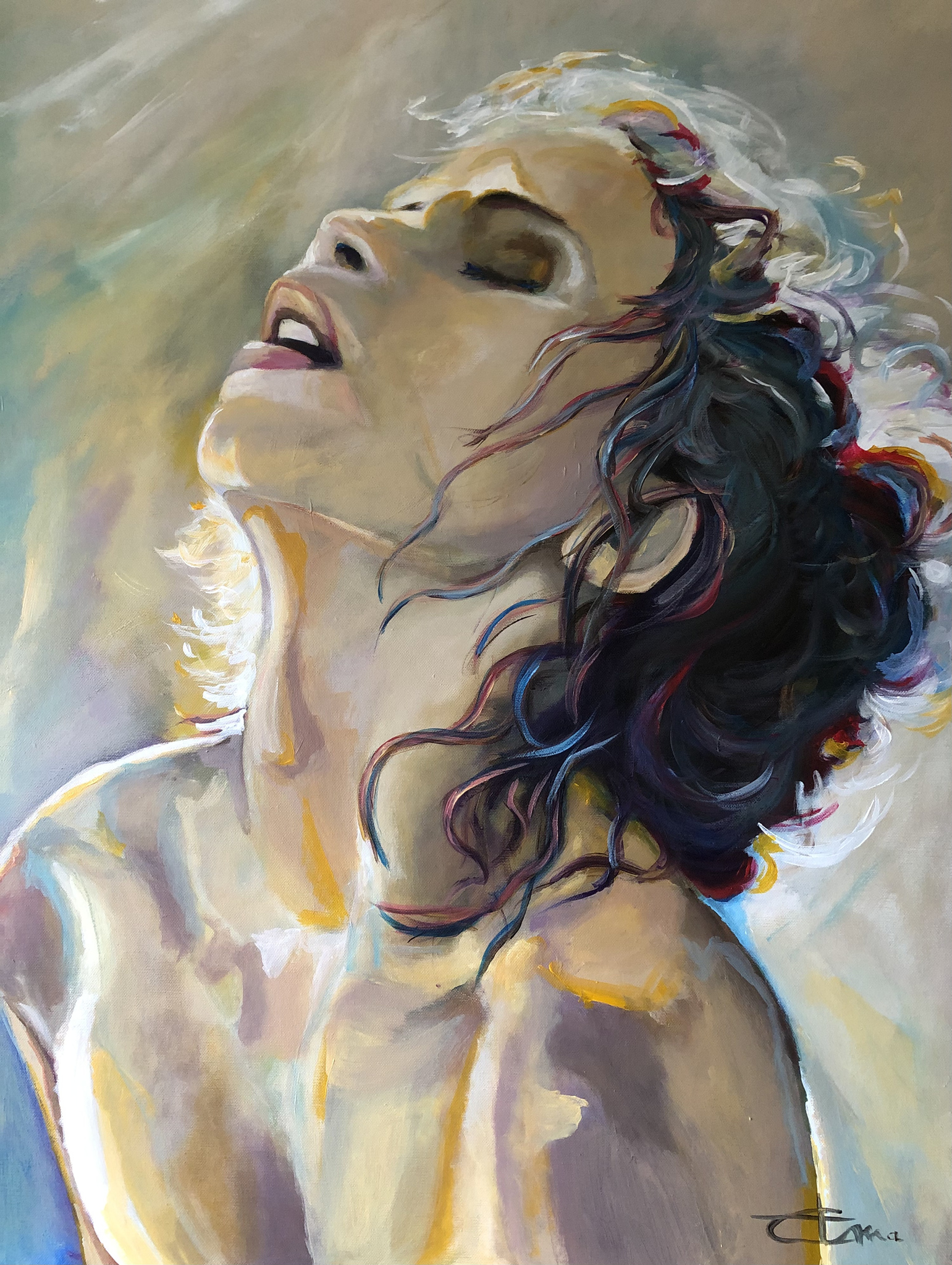 Schilderij Grijs Acryl Vrouw Liefde Erotisch Verleiding Mild