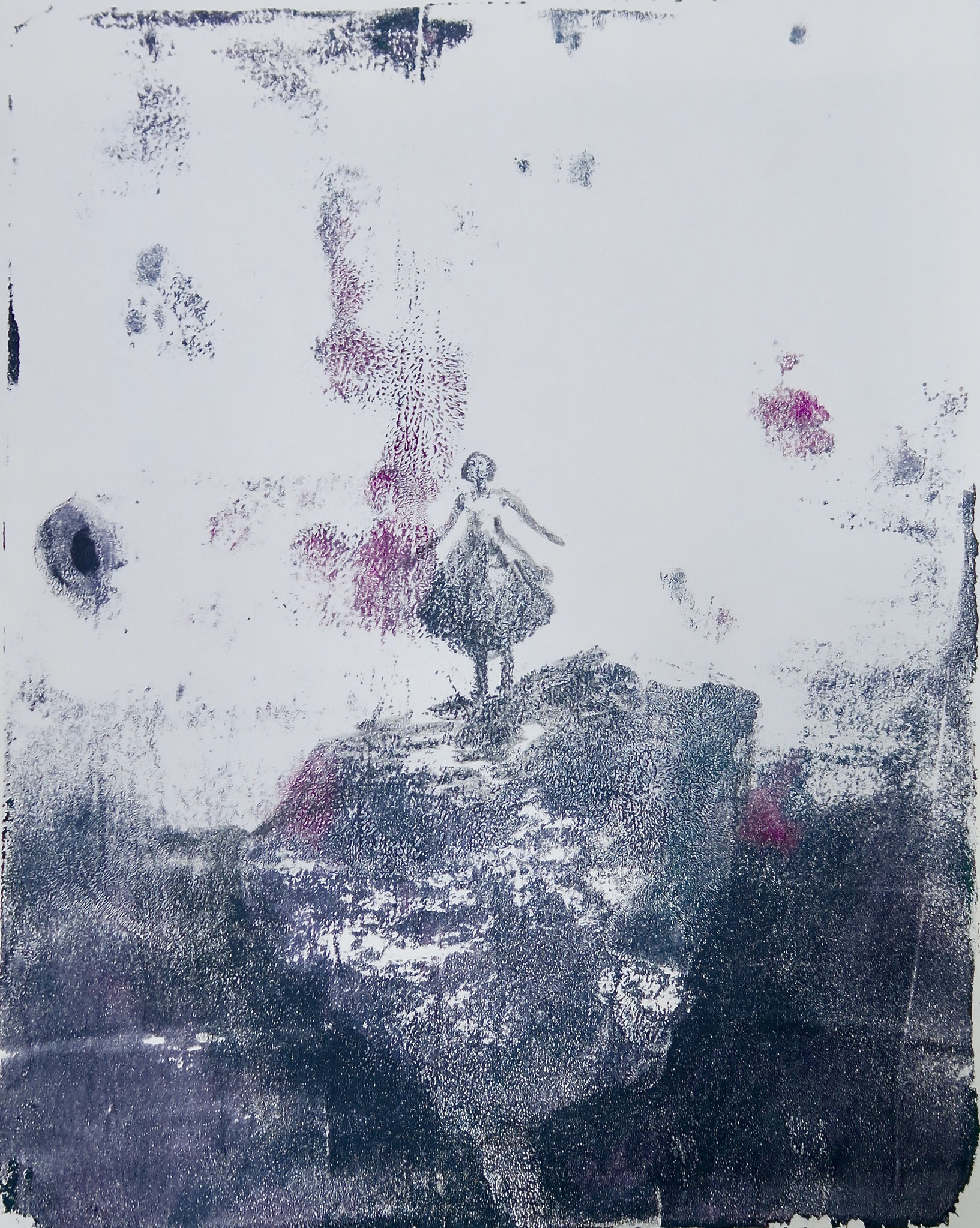 Wit Rood Zwart Papier Figuur Steen Op Diepte Monotype Onzekerheid Ravijn Pandemie