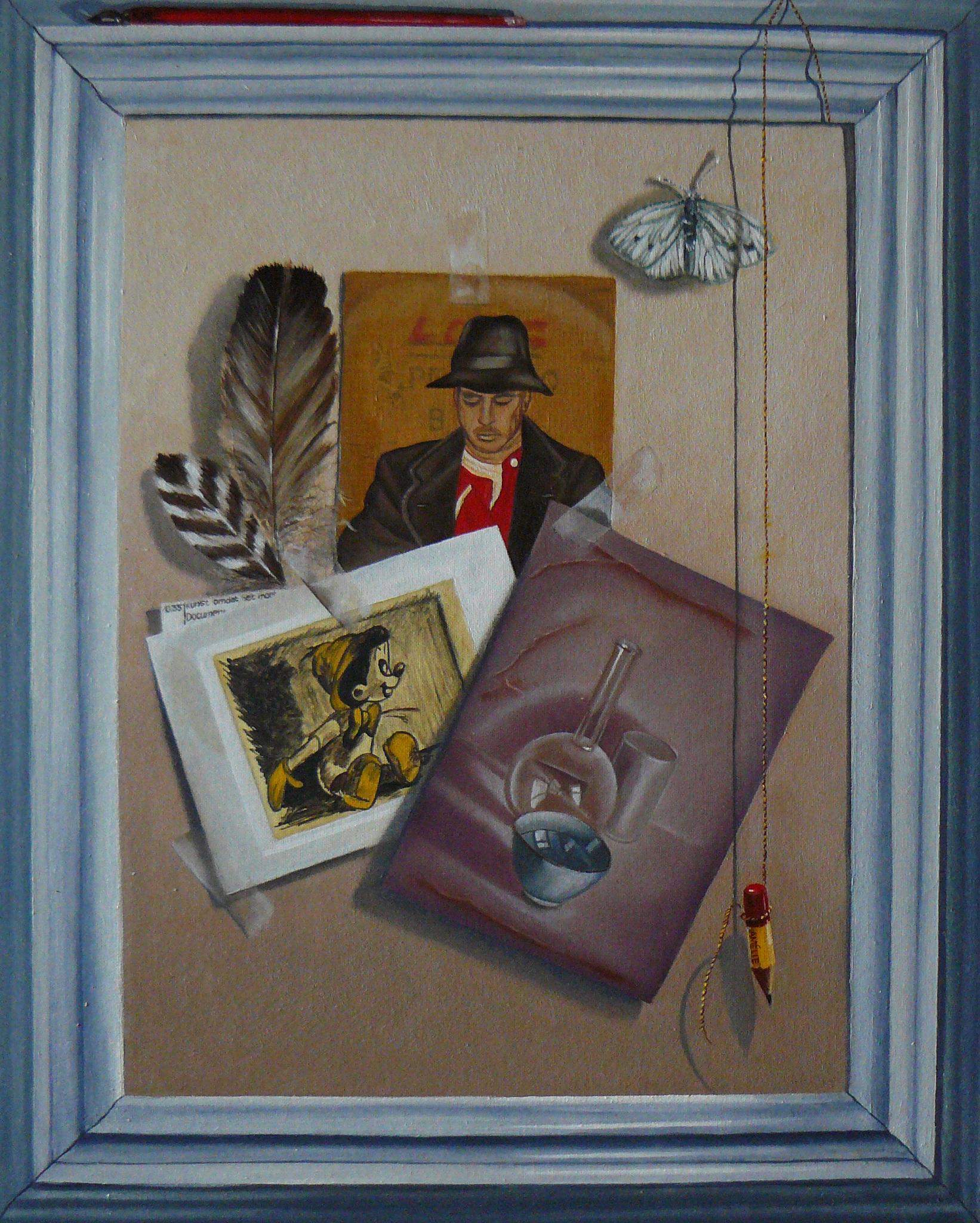 Alles is geschilderd.Ook de lijst en de kroontjespen.