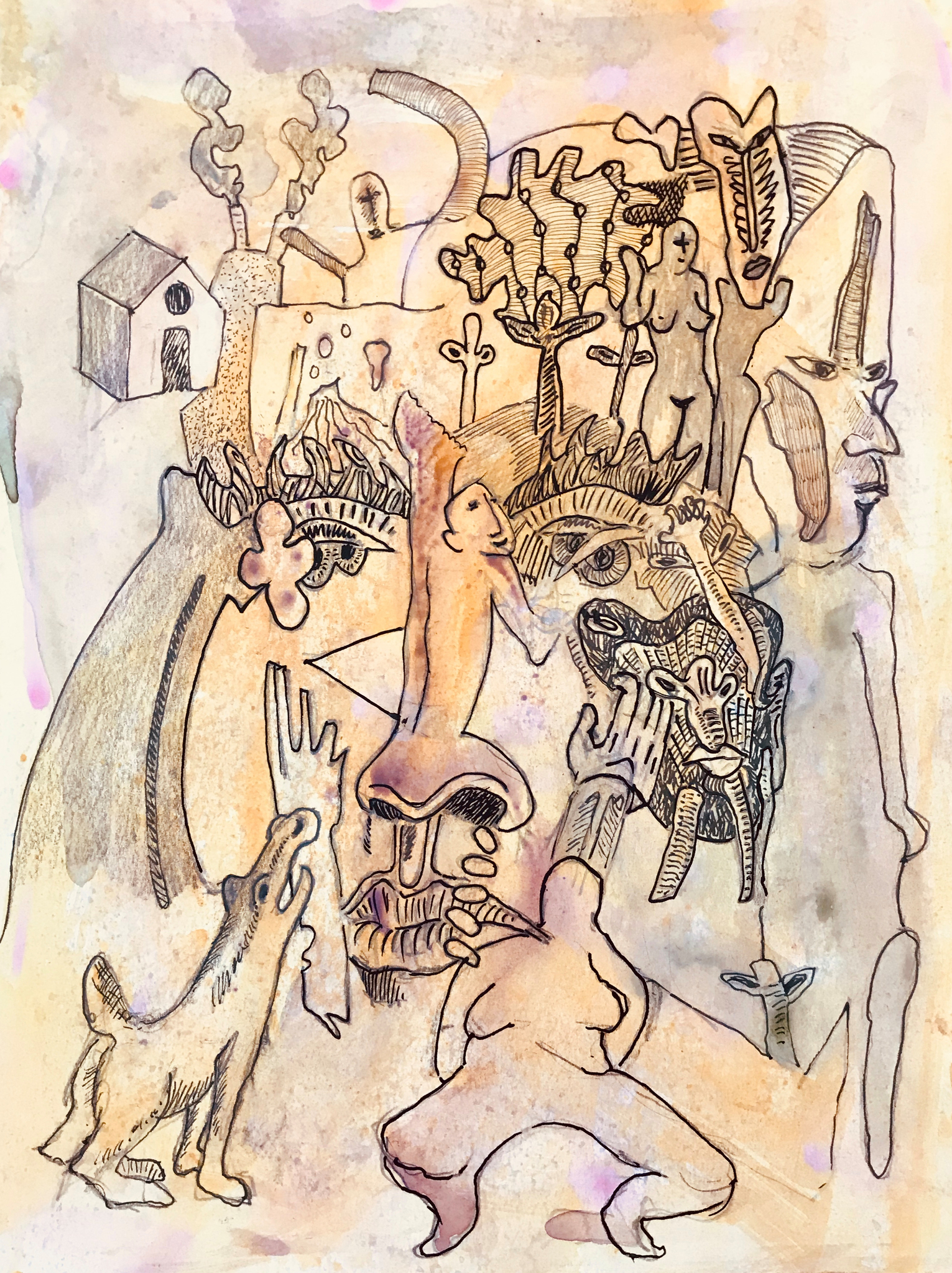 uit serie: JOURNAAL VAN NIET GEBEURDE ZAKEN, pentekeningen op geprepareerd papier, gescheurde randen