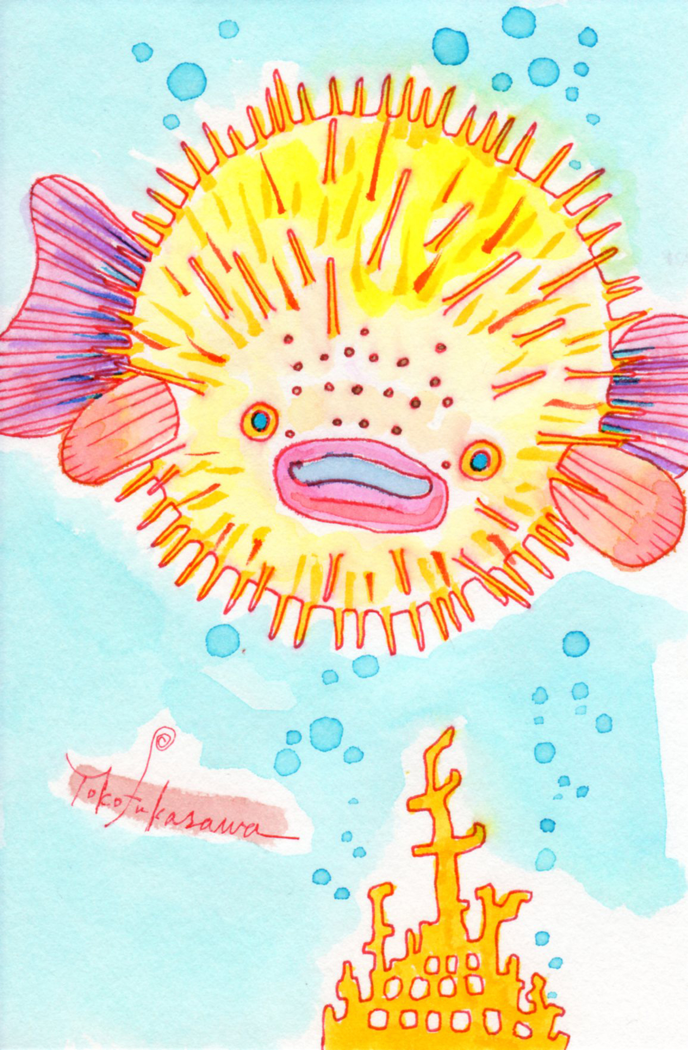 Yoko Fukasawa was born in 1982. 2001-Japan traditional craft department,Metal crafts major 2001-Volkswagen new Beetle - art contest The third place. 2002-TOKYO DOME - Tableware festival Fine work. 2017-And Schizophrenia has been revealed. Her paintings are outsider art. They are characterized by simple shapes and bright colors. She wants you to look at them and relax.