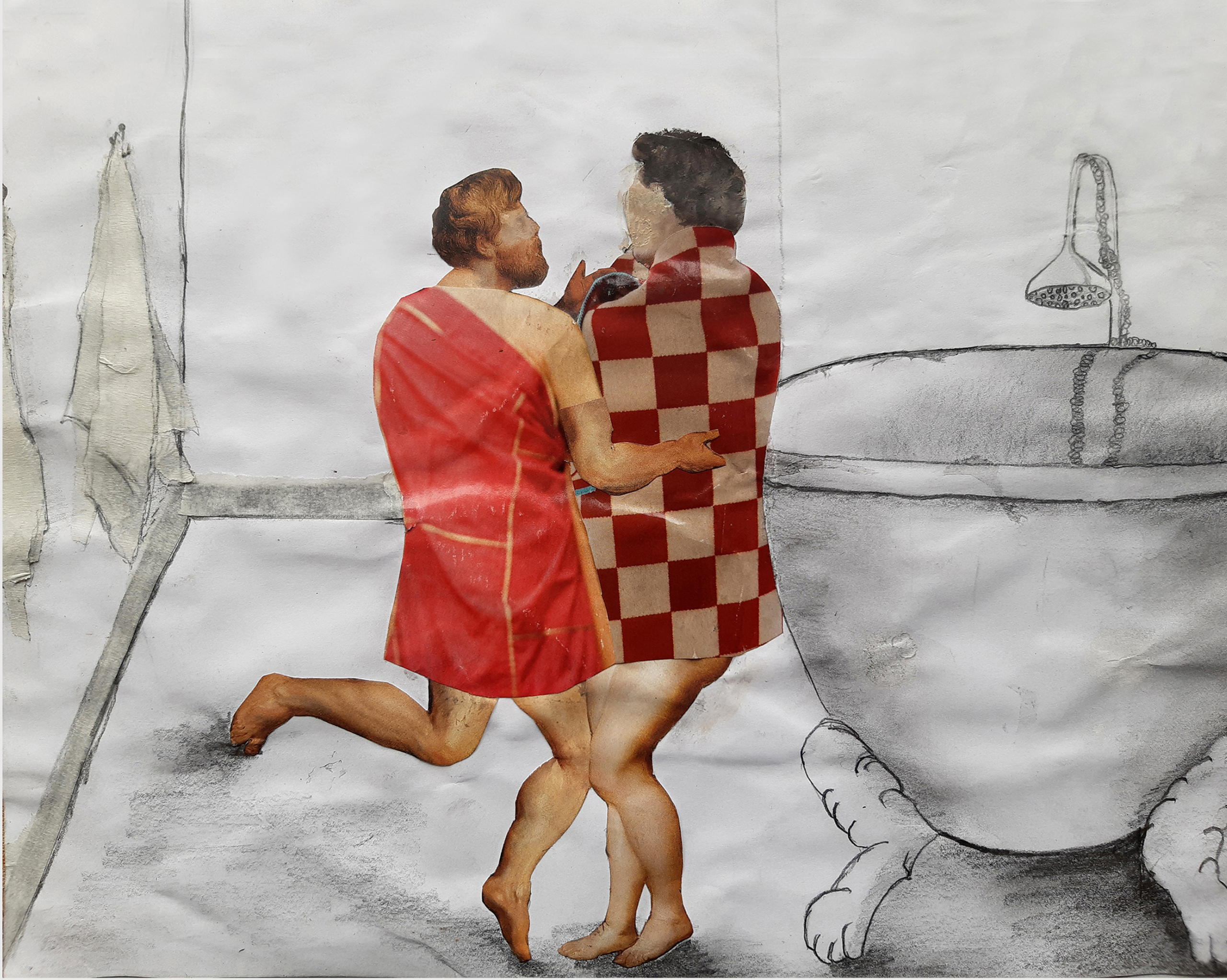Heerlijk badderen met z'n 2-tjes. Collage met tekenen