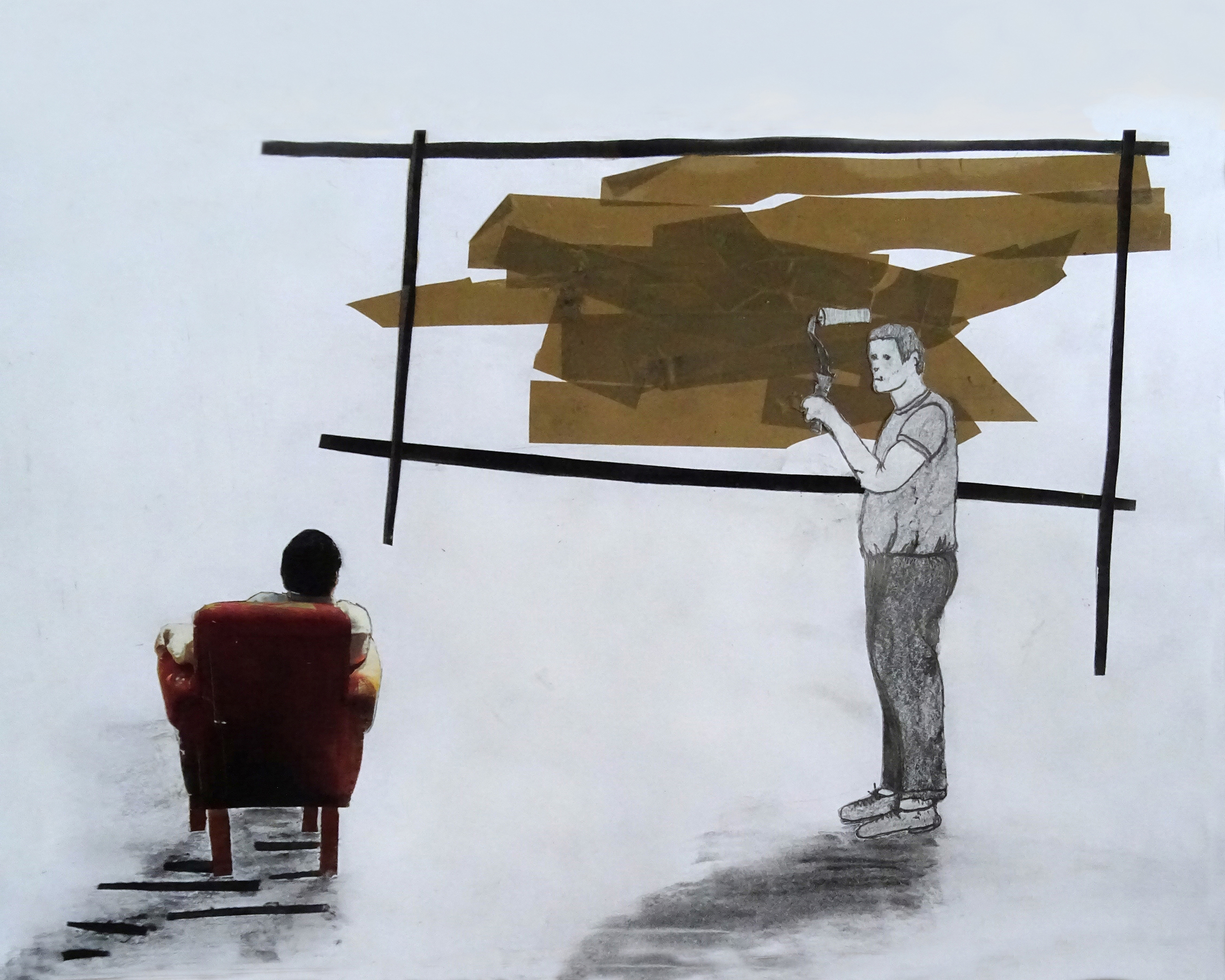Vindt u het goed zo, meneer? Collage, tekenen en plakband