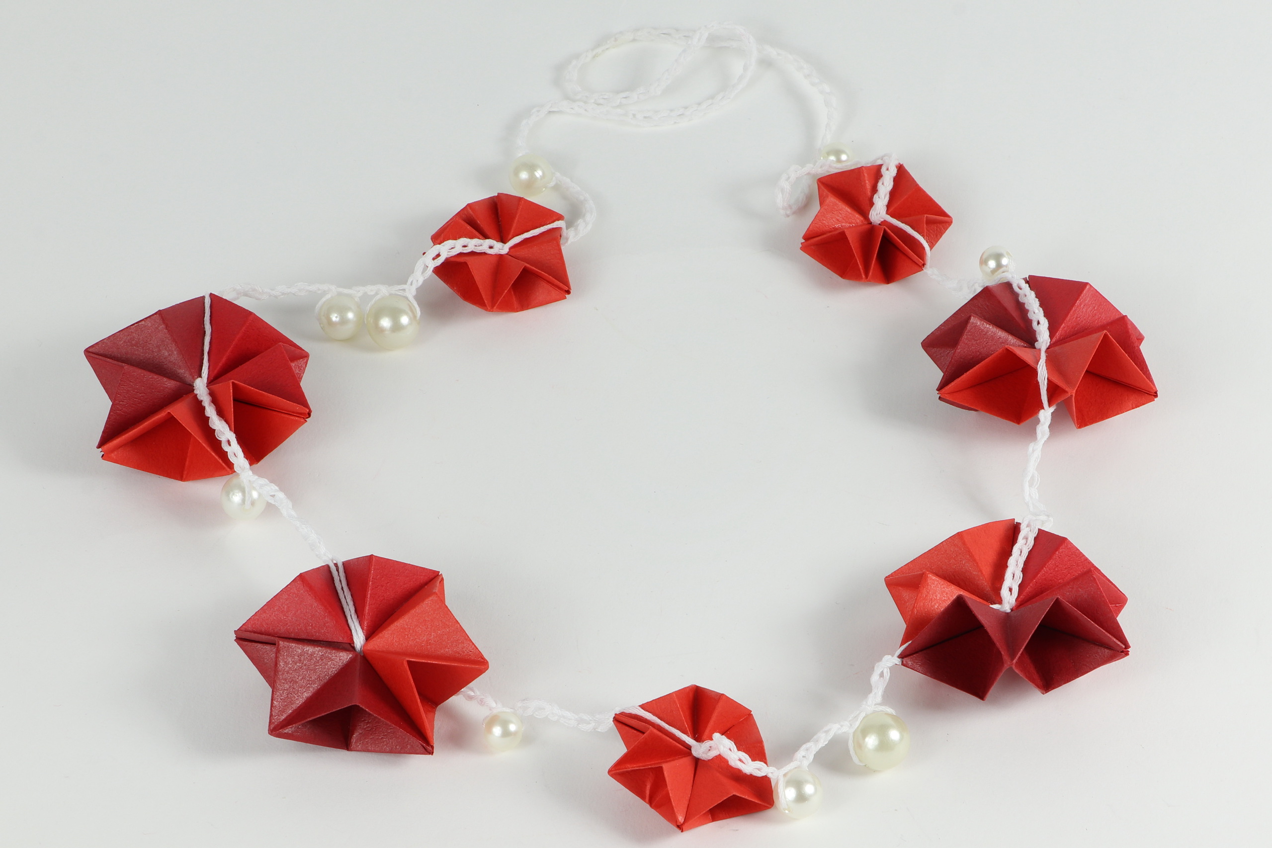 Ketting origami rood/parel