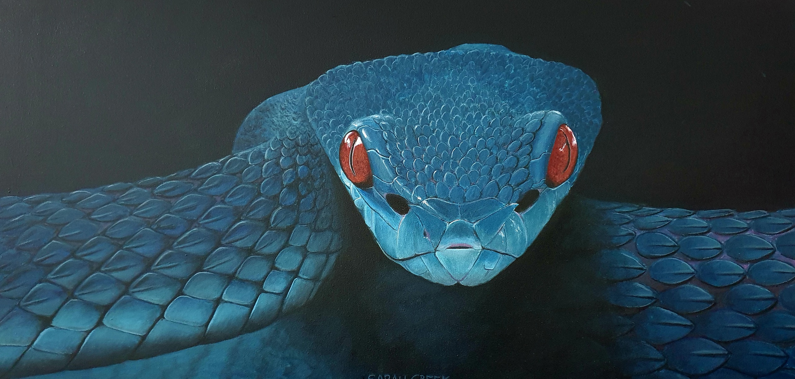 Blauw Acryl Art Slang Kunst Blauwe Realisme Adder Dutchartist