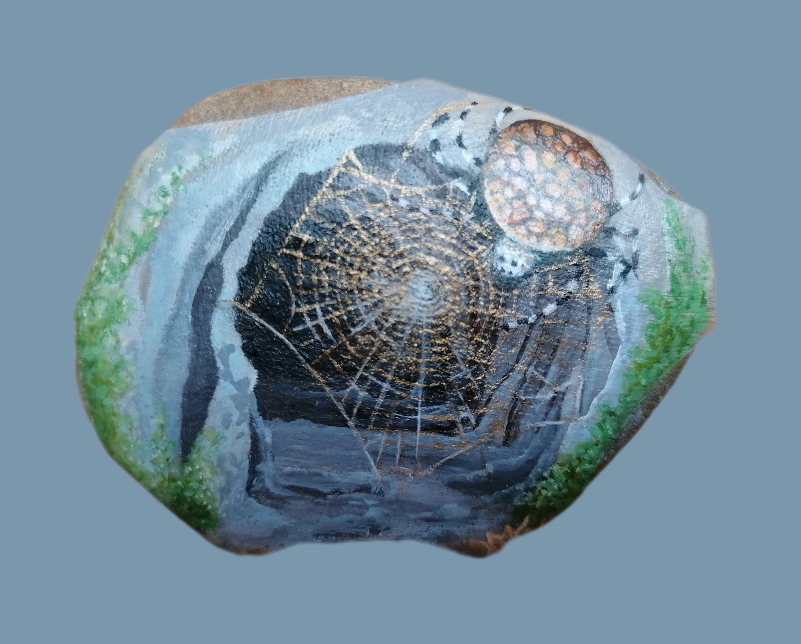 Deze rivier steen is in opdracht geschilderd voor iemand die een verhaal aan het schrijven was over Grootmoeder Spin.