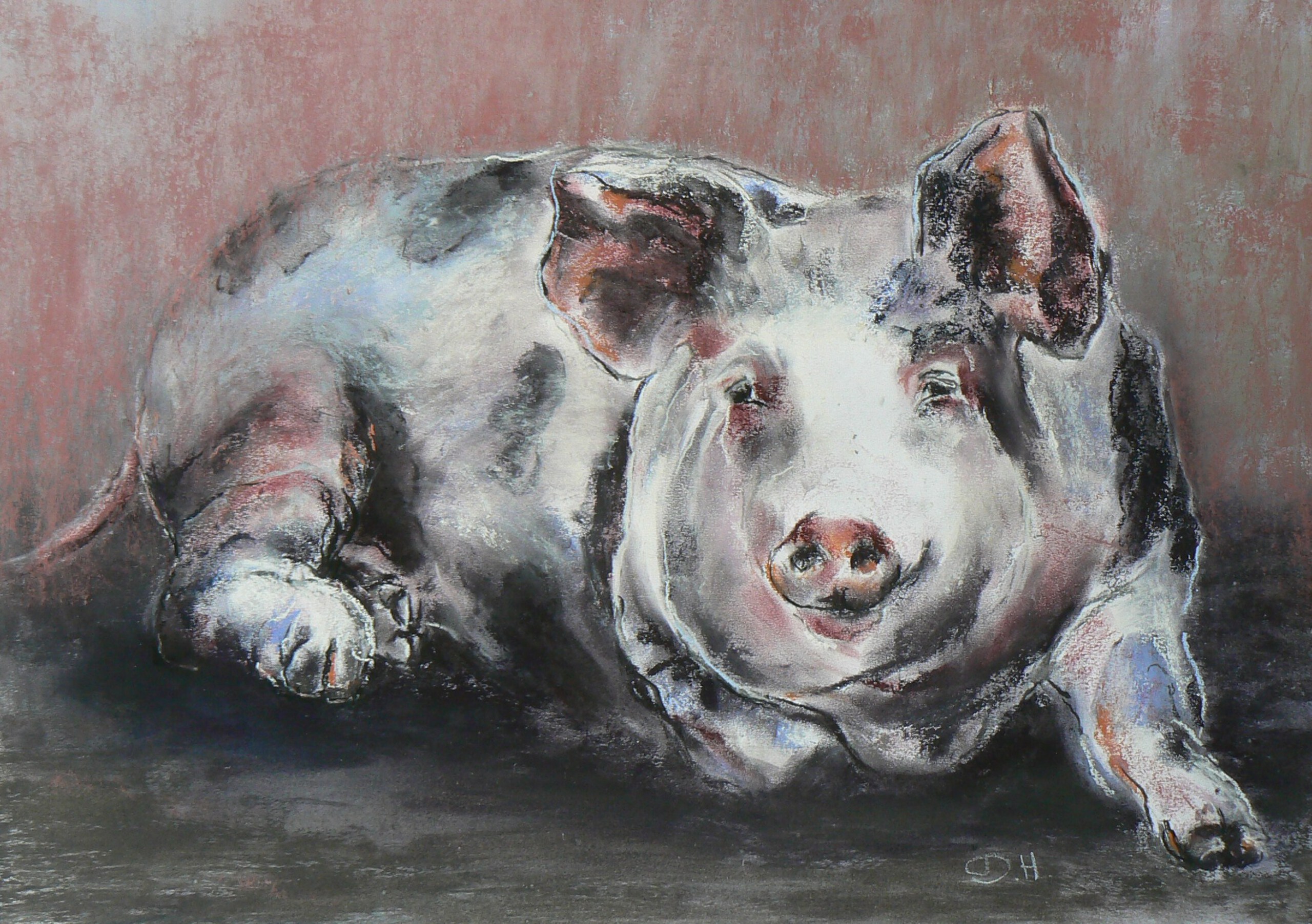 Pastel Liggend Varken Varkentje Tevreden