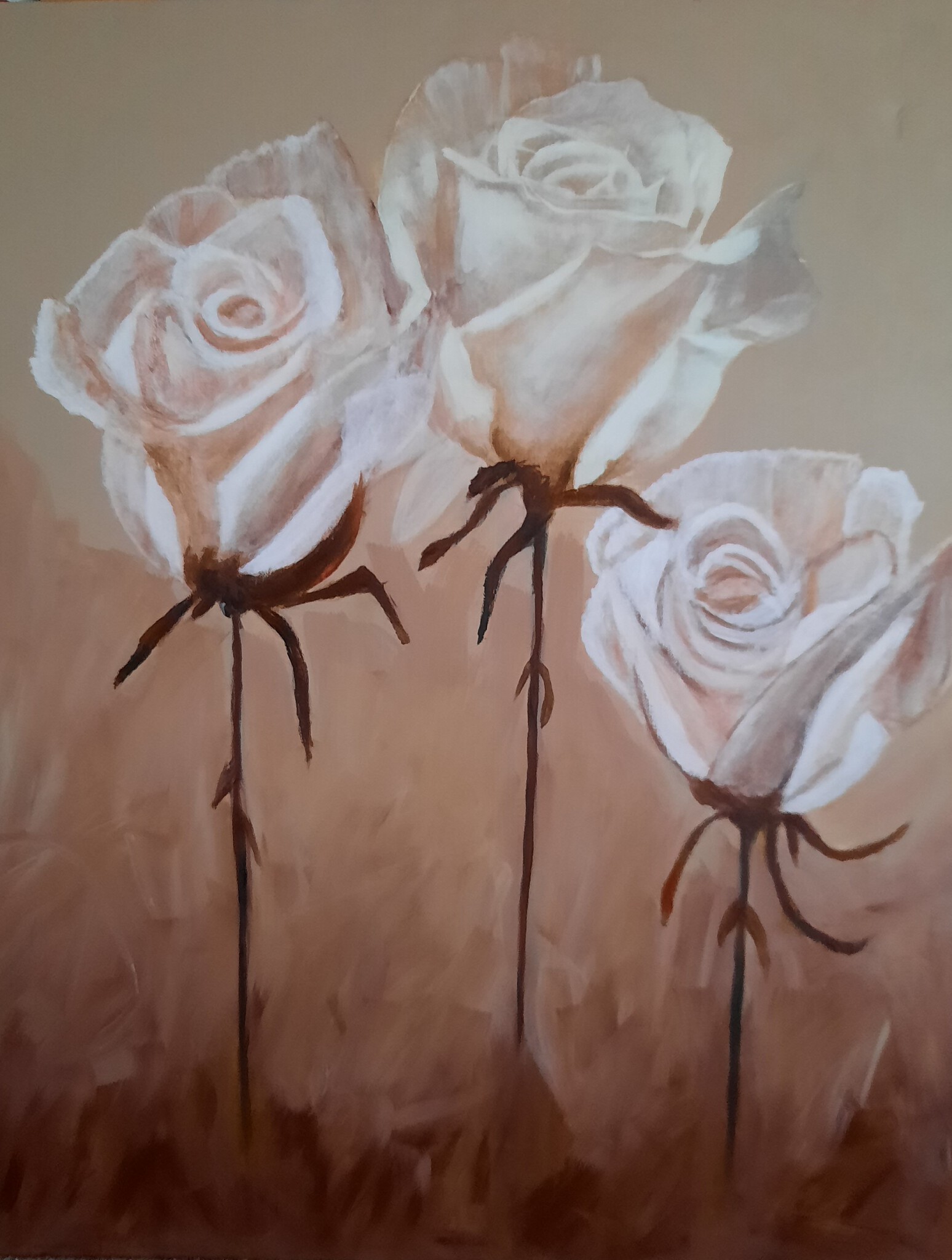 Witte rozen geschilderd op doek. Expositie Sint Jozefoort van Kunstkring De Meent te Nuland Thema bloemen 22 maart t/m 21 juni 2021