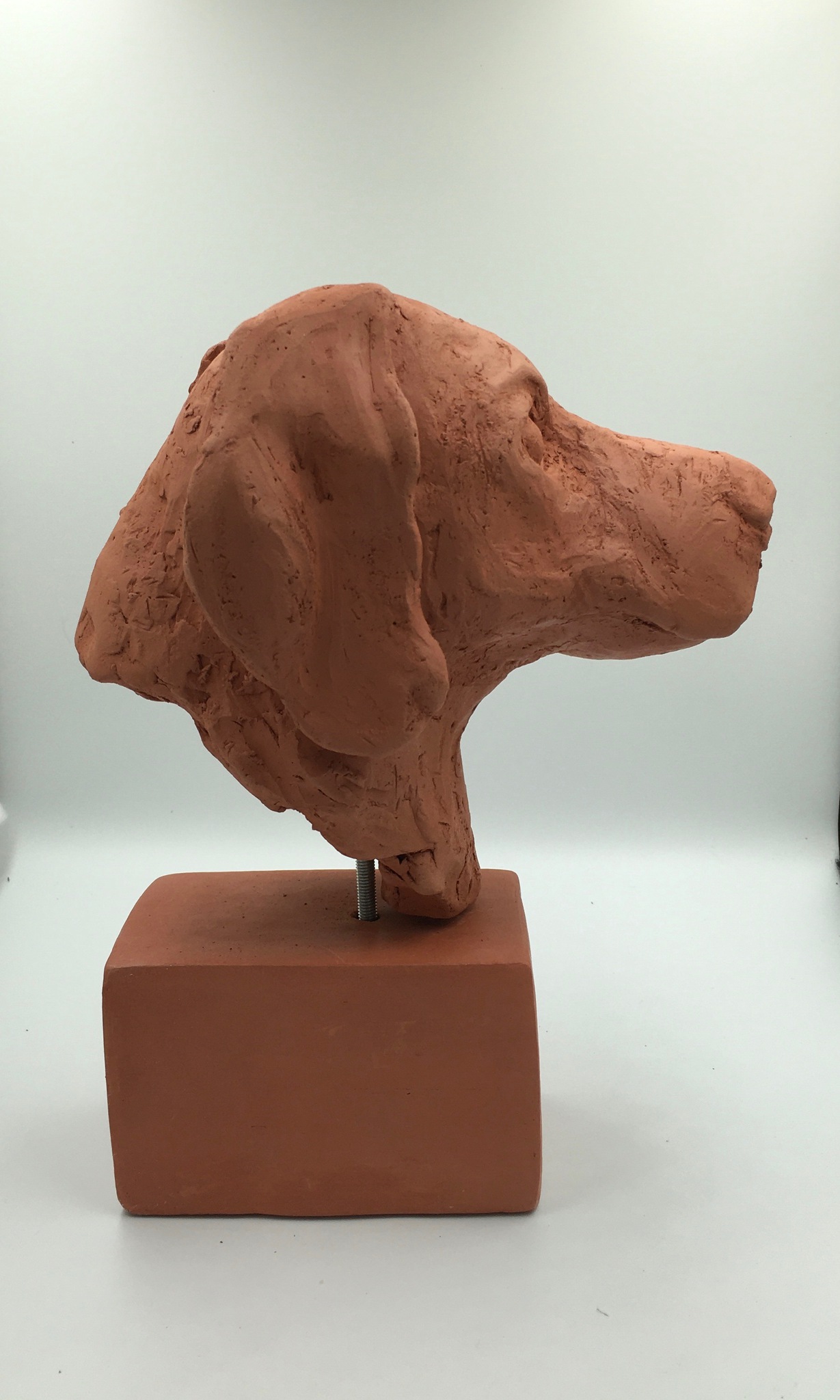 Weimaraner in terracotta, op sokkel