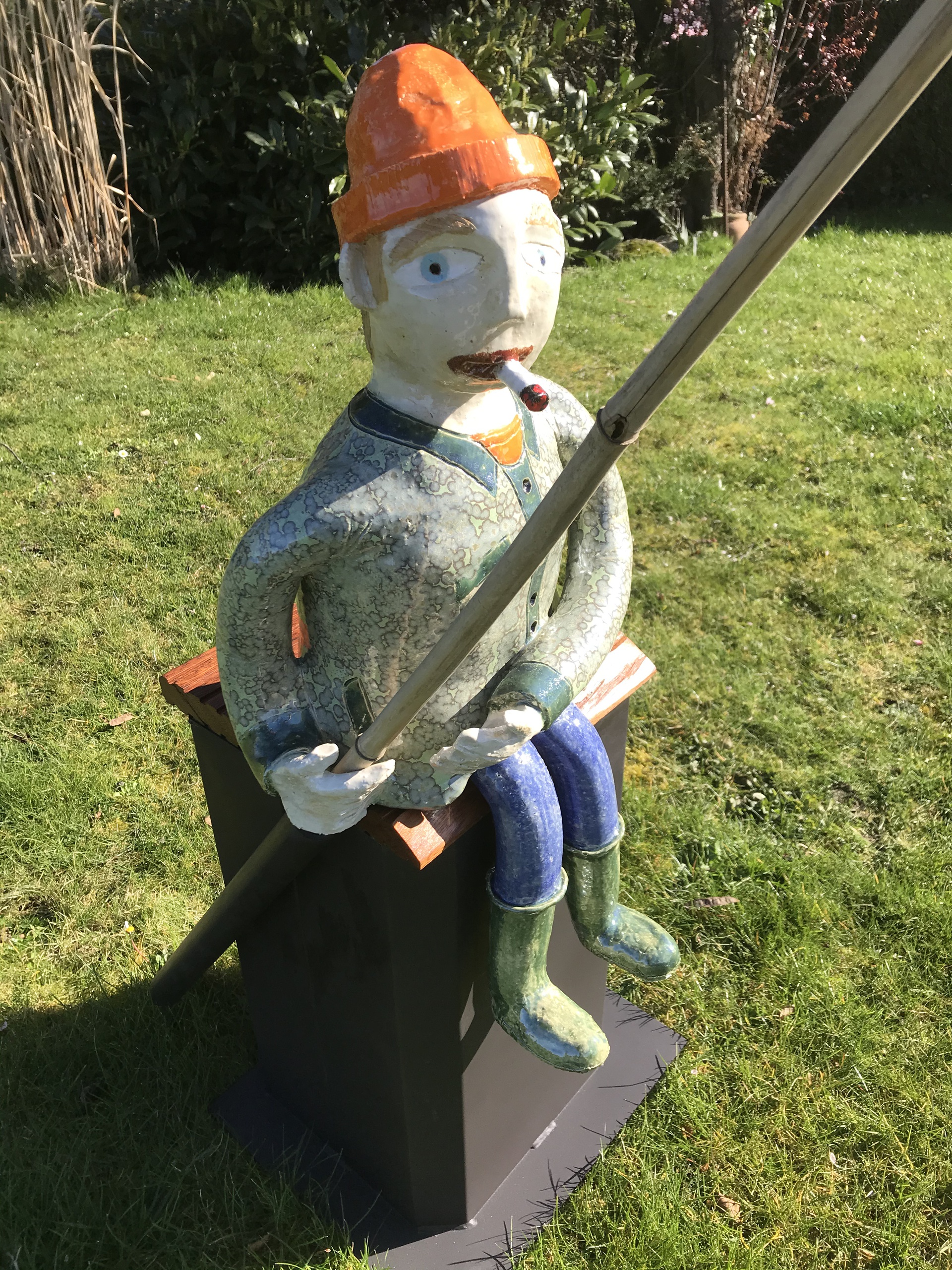 Het vissertje en zijn vis zijn gebakken op 1250° en zijn daardoor perfect te plaatsen in de tuin of aan de vijver.