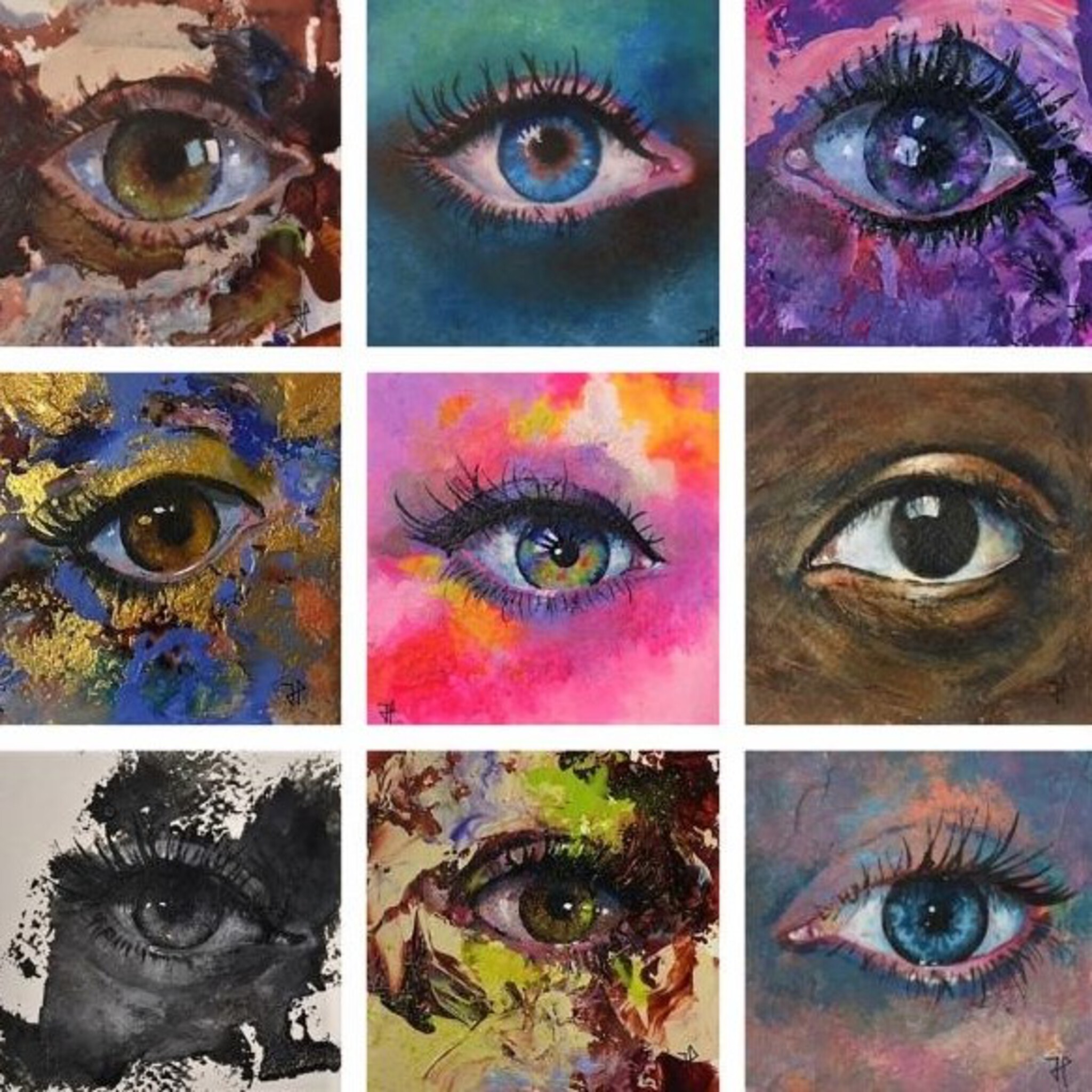 Schilderij Acryl Klein Kleuren Blik Werk Oogje Oog Kijken Minischilderij