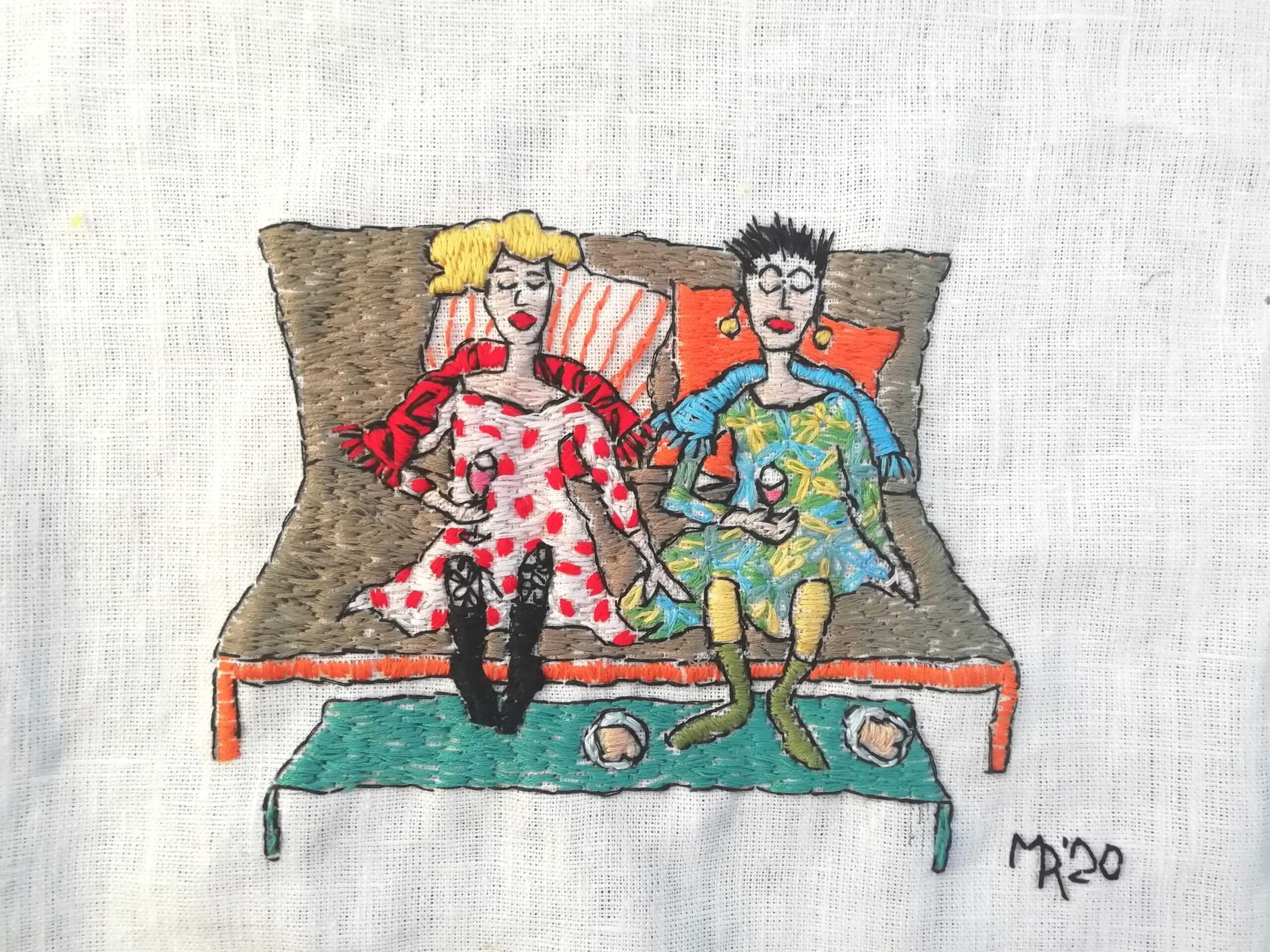 borduurwerk gebaseerd op mijn getekende dagboek, in de serie sweet memories ter nagedachtenis van mijn in 2020 overleden hartsvriendin