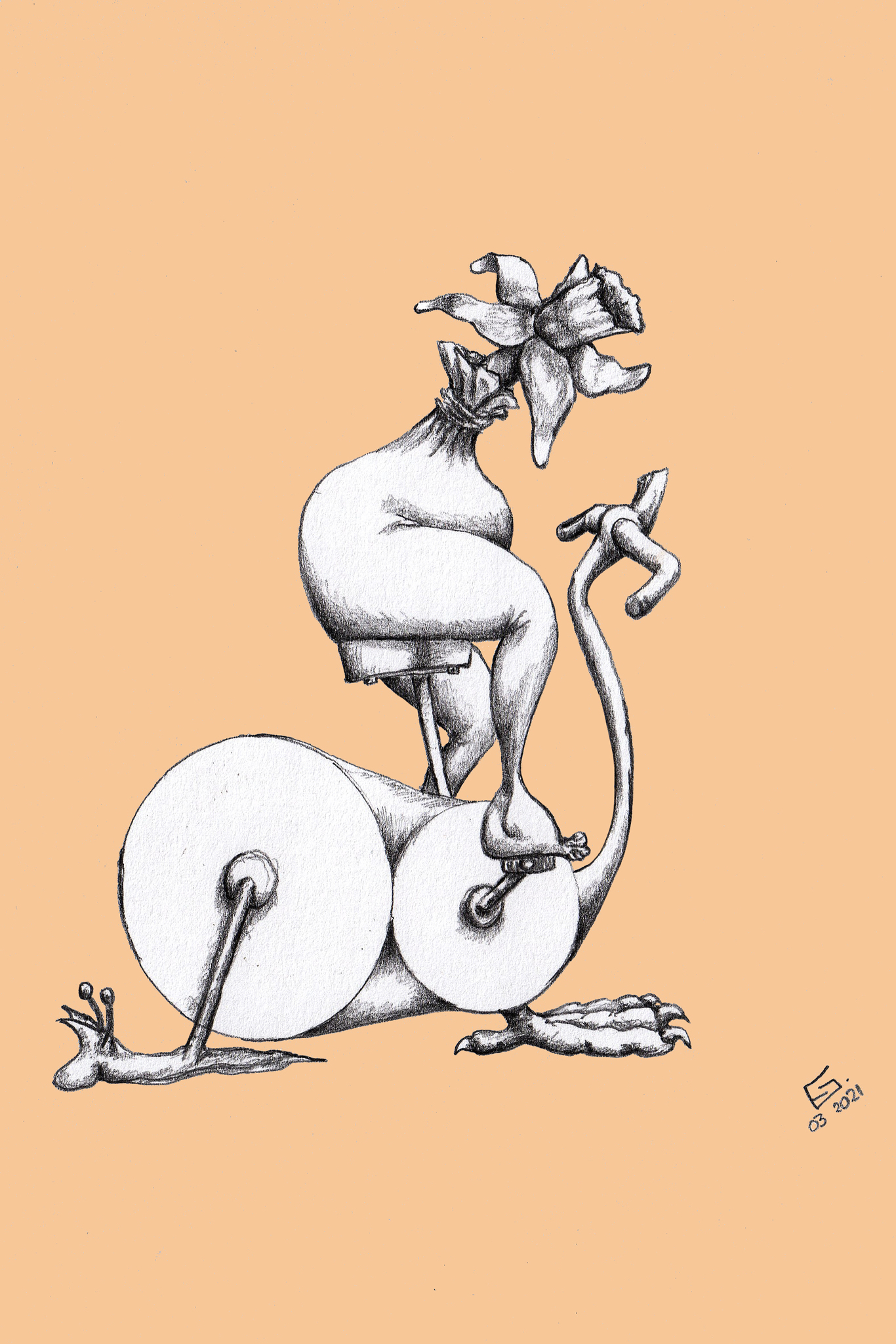 Potlood (HB) op papier, gekleurd in pc. Alleen te koop als kunstkaart.