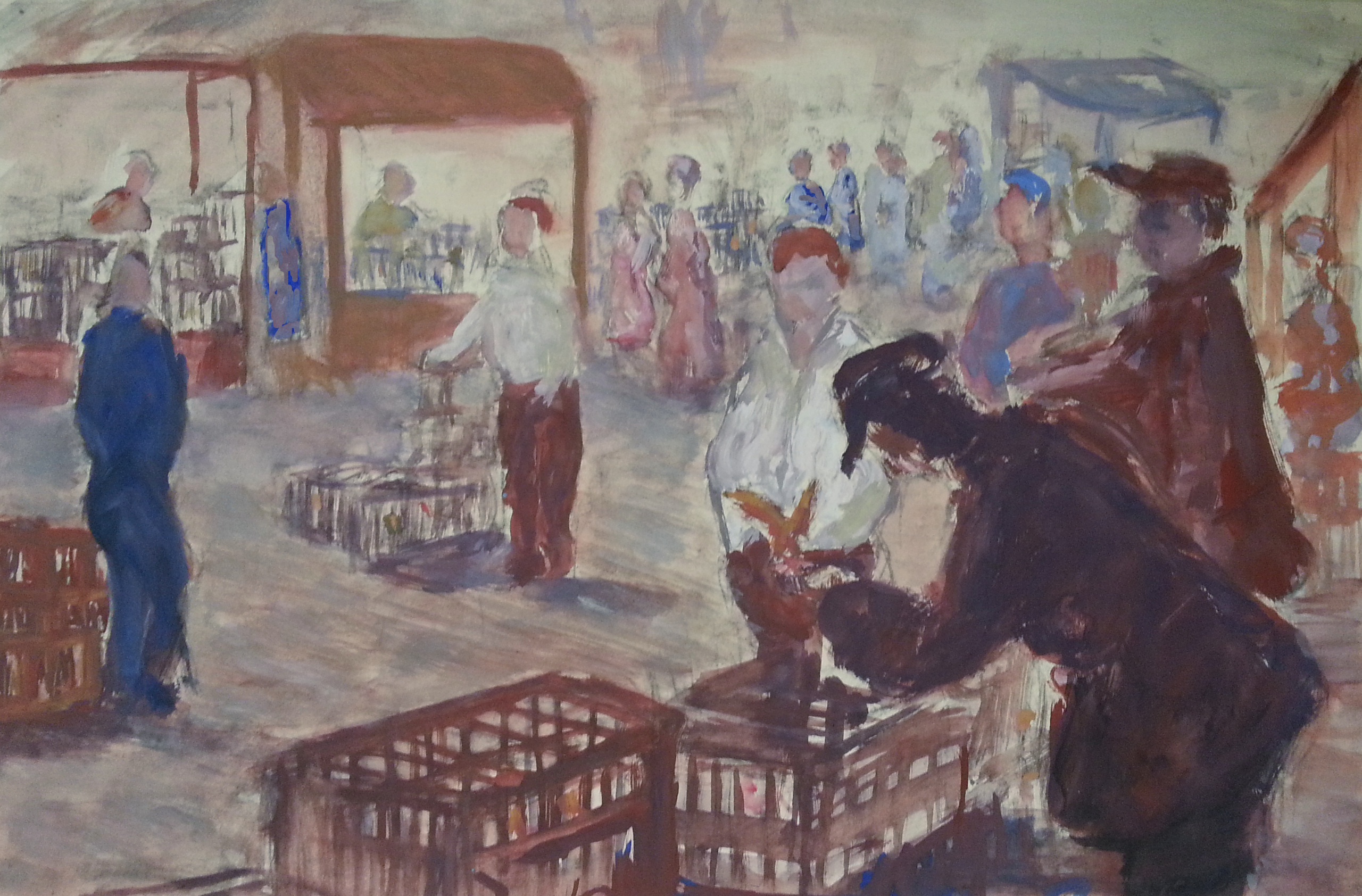 Waterlooplein 1964, kopers bij de vogeltjeskraam 2