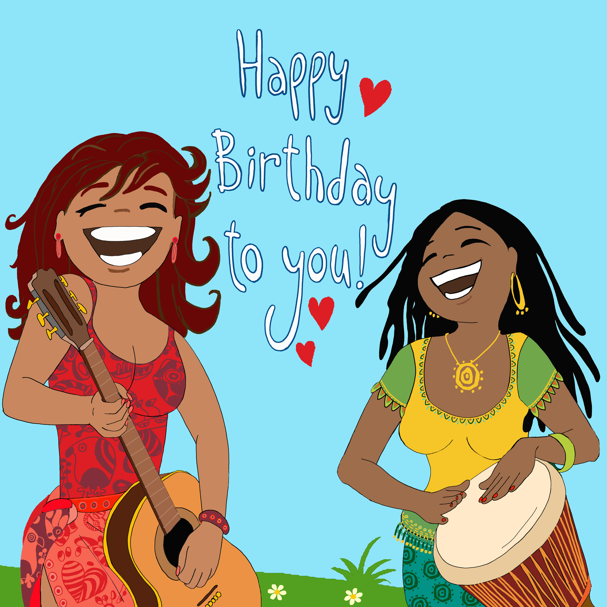 Feest Kleurrijk Tekst Muziek Blij Artist Gitaar Verjaardag Gekleurd Jarig Verjaardagskaart Feestelijk Happy Mail Trommels Birthday Postcard Kunstkaart Celebration Partytime Antilliaans Kleurrijkekunst Vrolijkekunst Mirjamgriffioenart Caribbeanartist