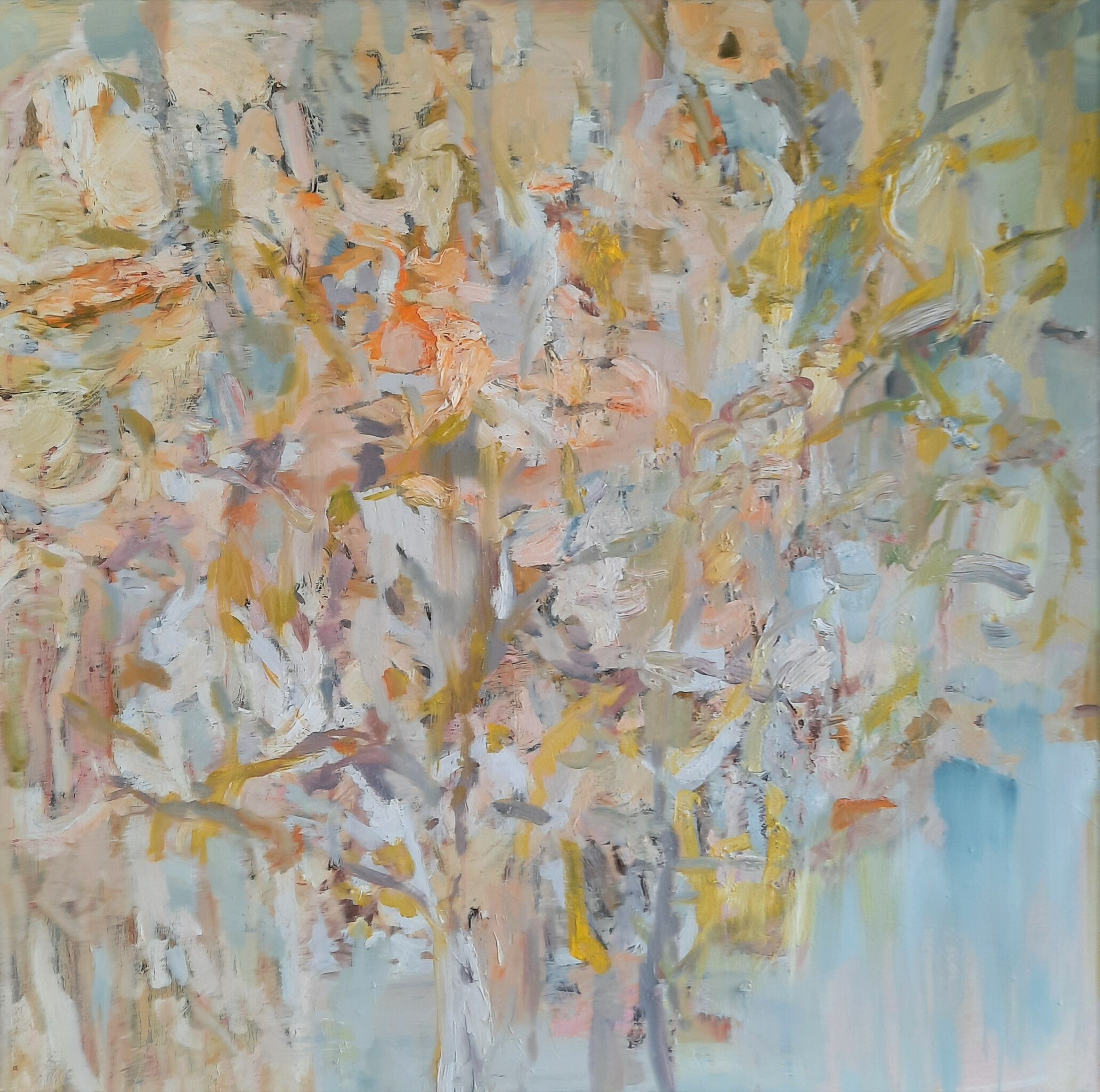 Abstract Art Licht Canvas Olieverf Kunst Natuur Moderne Pastel Boom Lente Kleur Nieuw Bloesem Voorjaar Begin Seizoen Blijdschap Contemporary Overdaad Impasto Verftoetsen Collectorsart