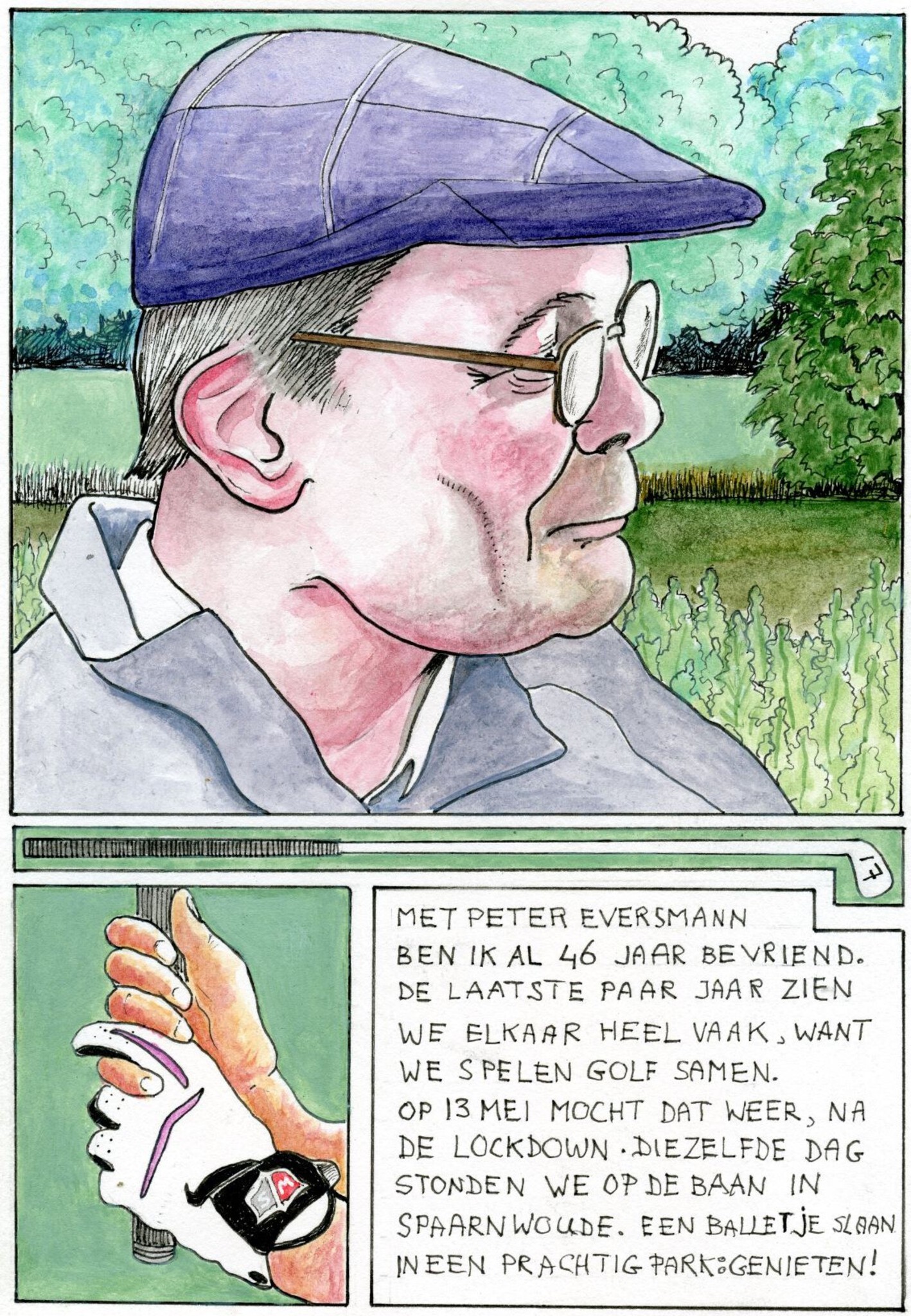 Portret van Peter Eversmann, pen en aquarel op papier, onderdeel van project 'Amsterdammers geportretteerd.
