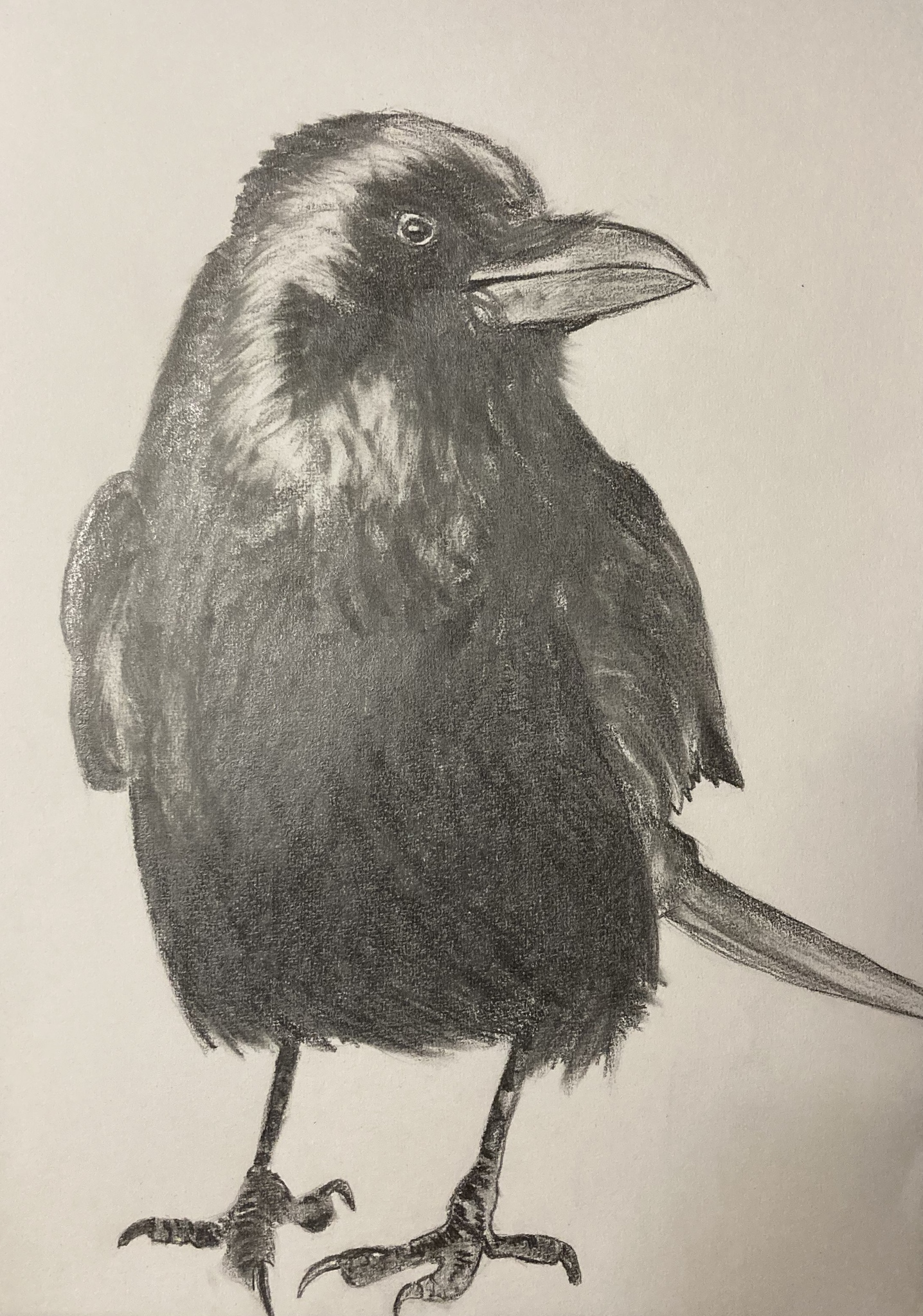 Kraai in grafiet op papier.
