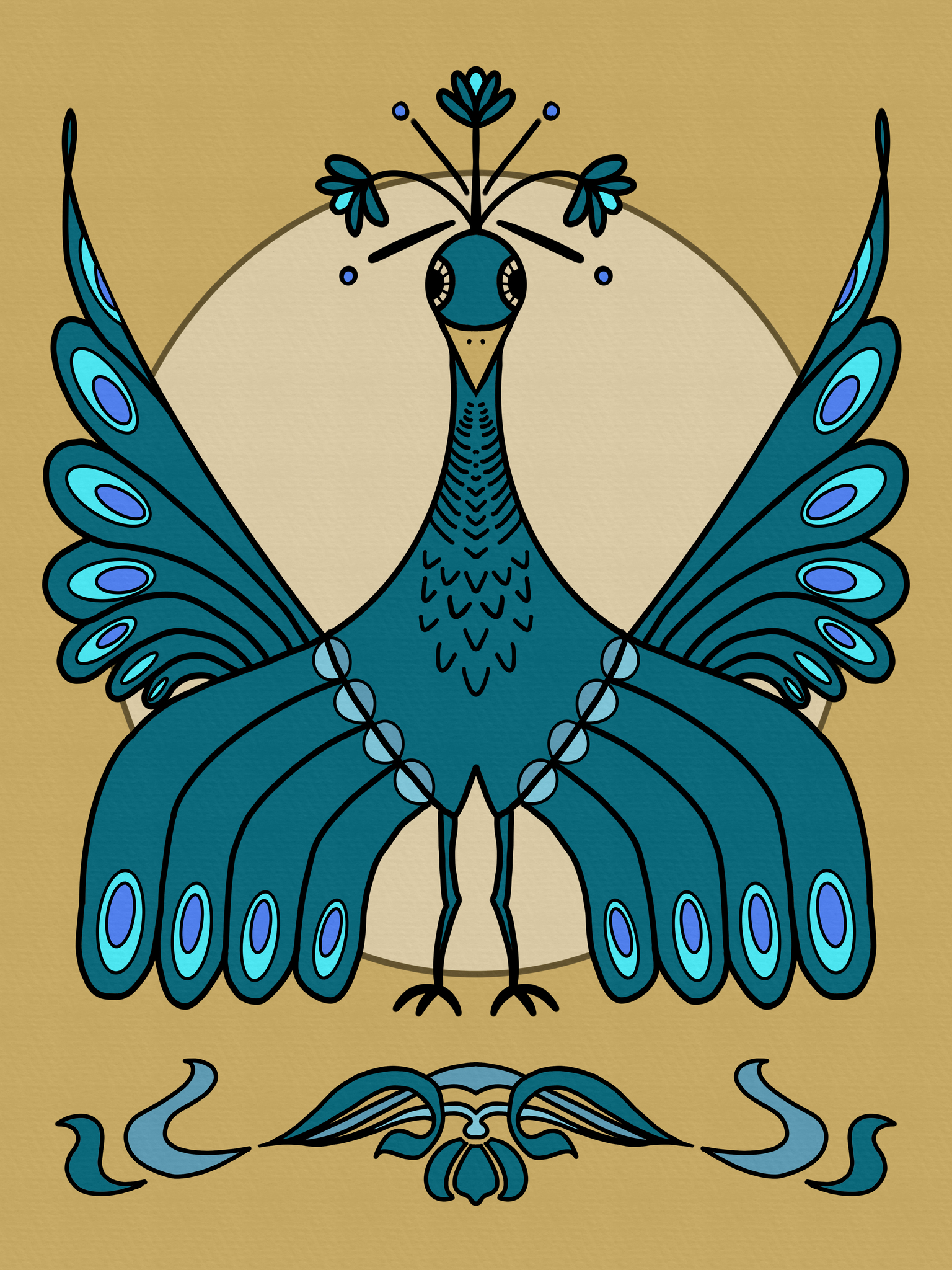 Print van deze pauw verkrijgbaar via https://www.werkaandemuur.nl/nl/shopwerk/Jugendstil-pauw/779604/132
