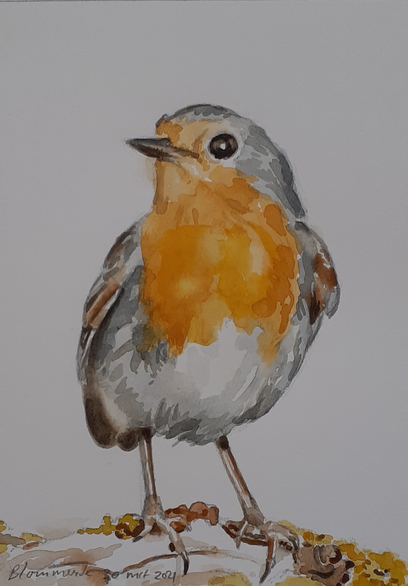 Aquarel van een roodborst