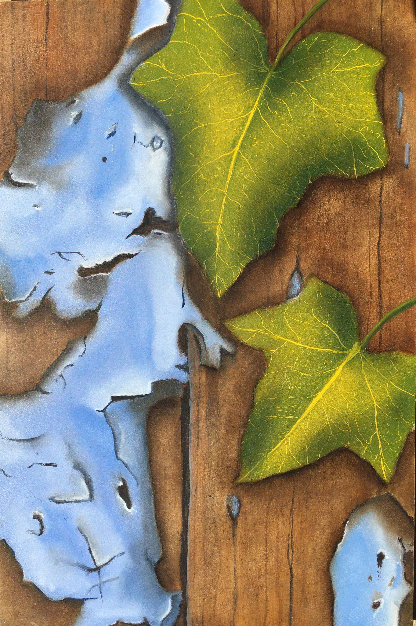 Hederablad op oud hout