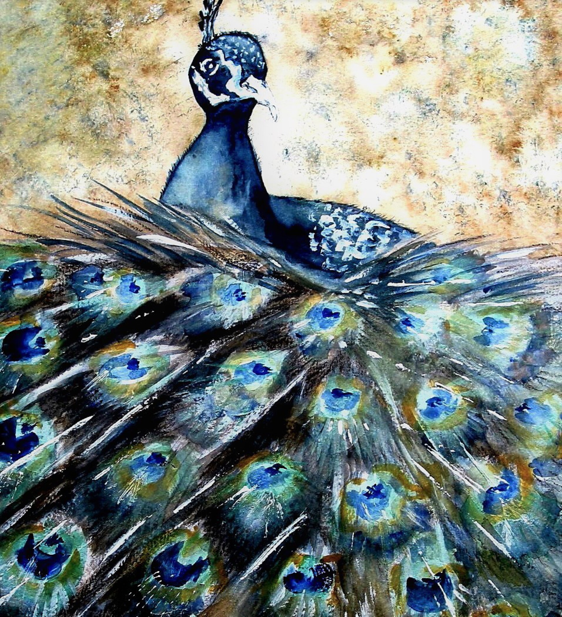 Blauw Vogel Mixed Media Natuur Veren Pauw Pracht
